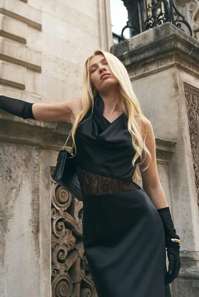 The fabric is not my fav though the dress looks amazing when you were it. Its so elegant and fits perfectly.