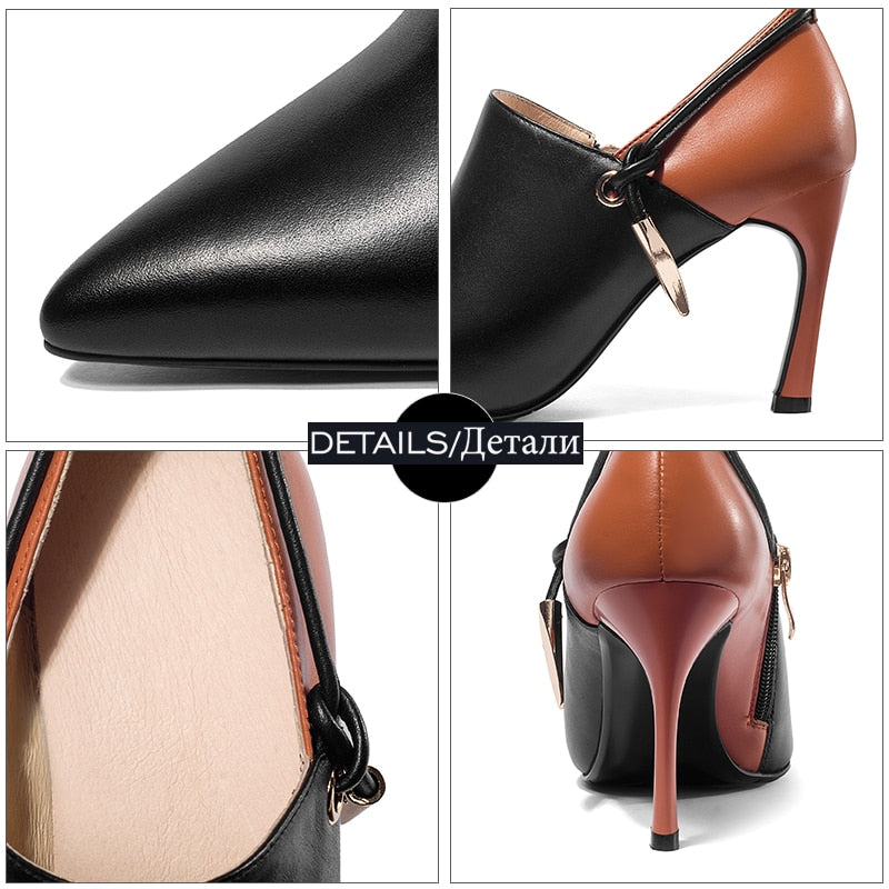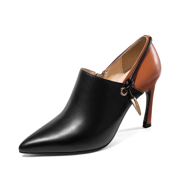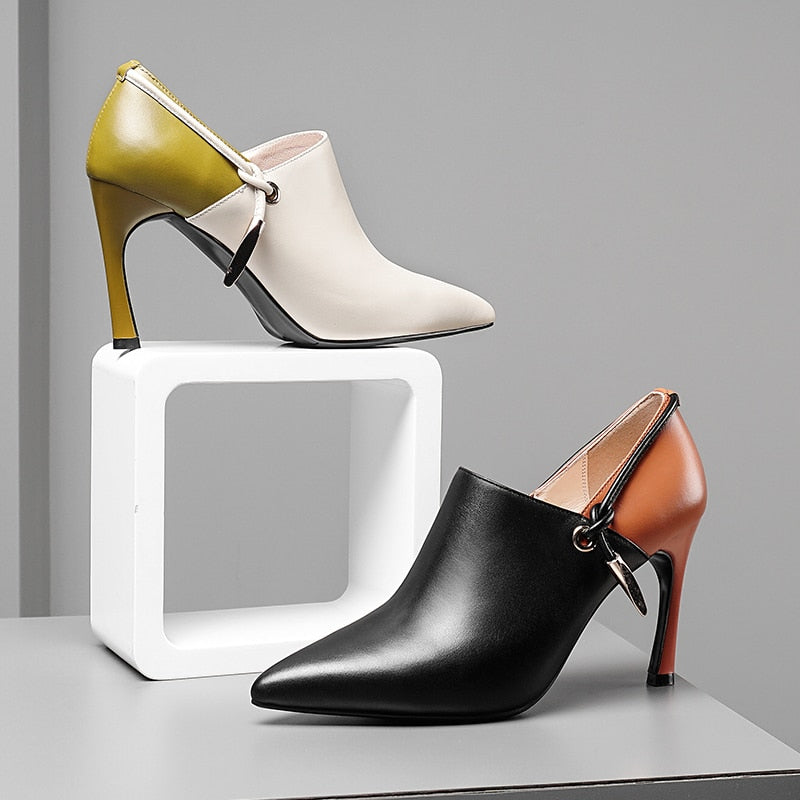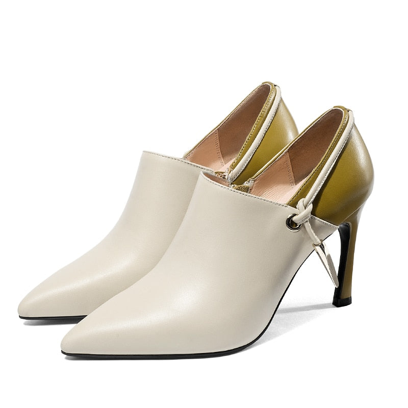 Cuero genuino en punta puntiaguda para coser tacones finos