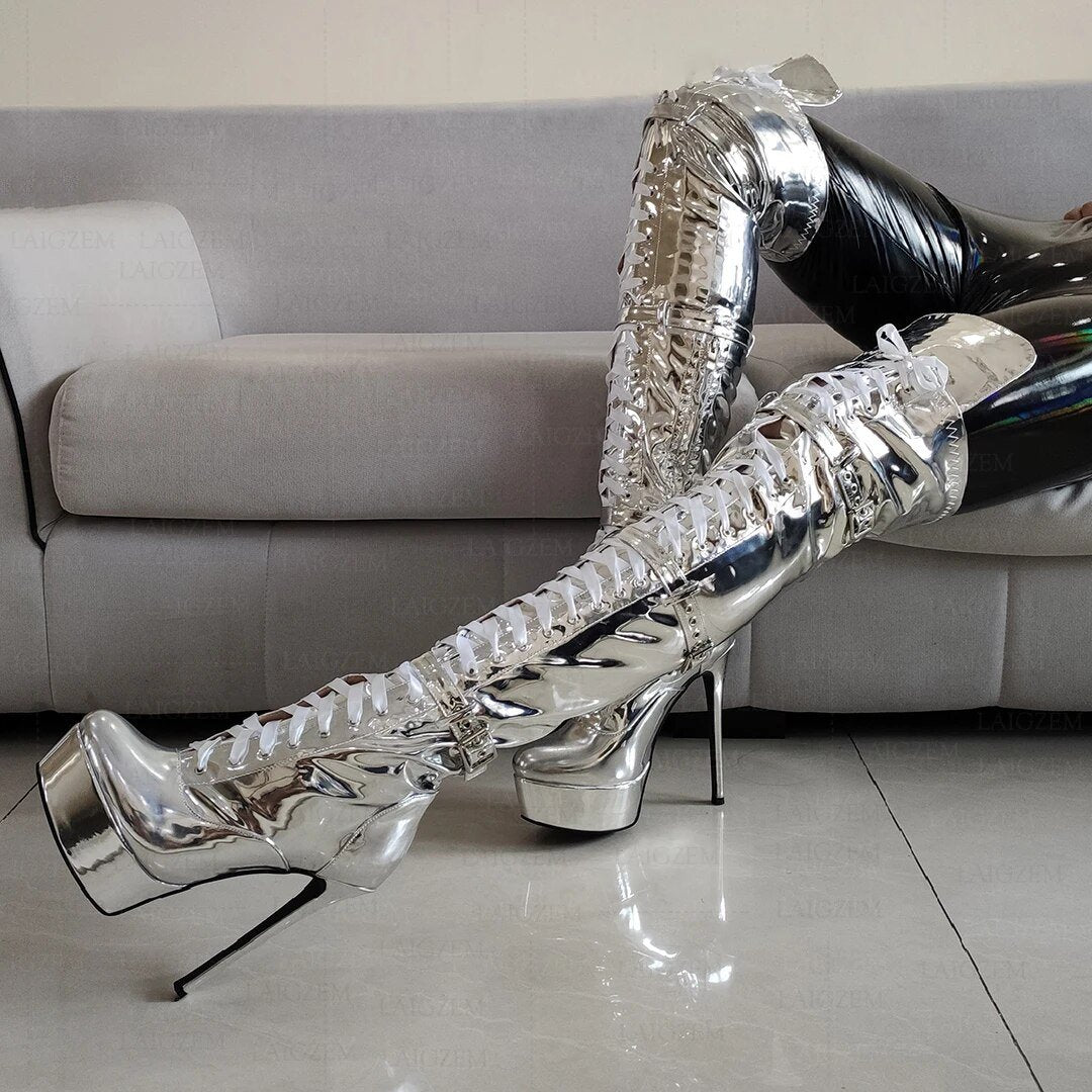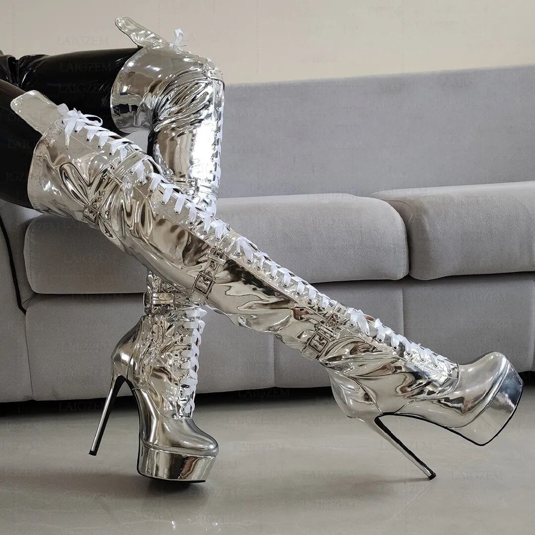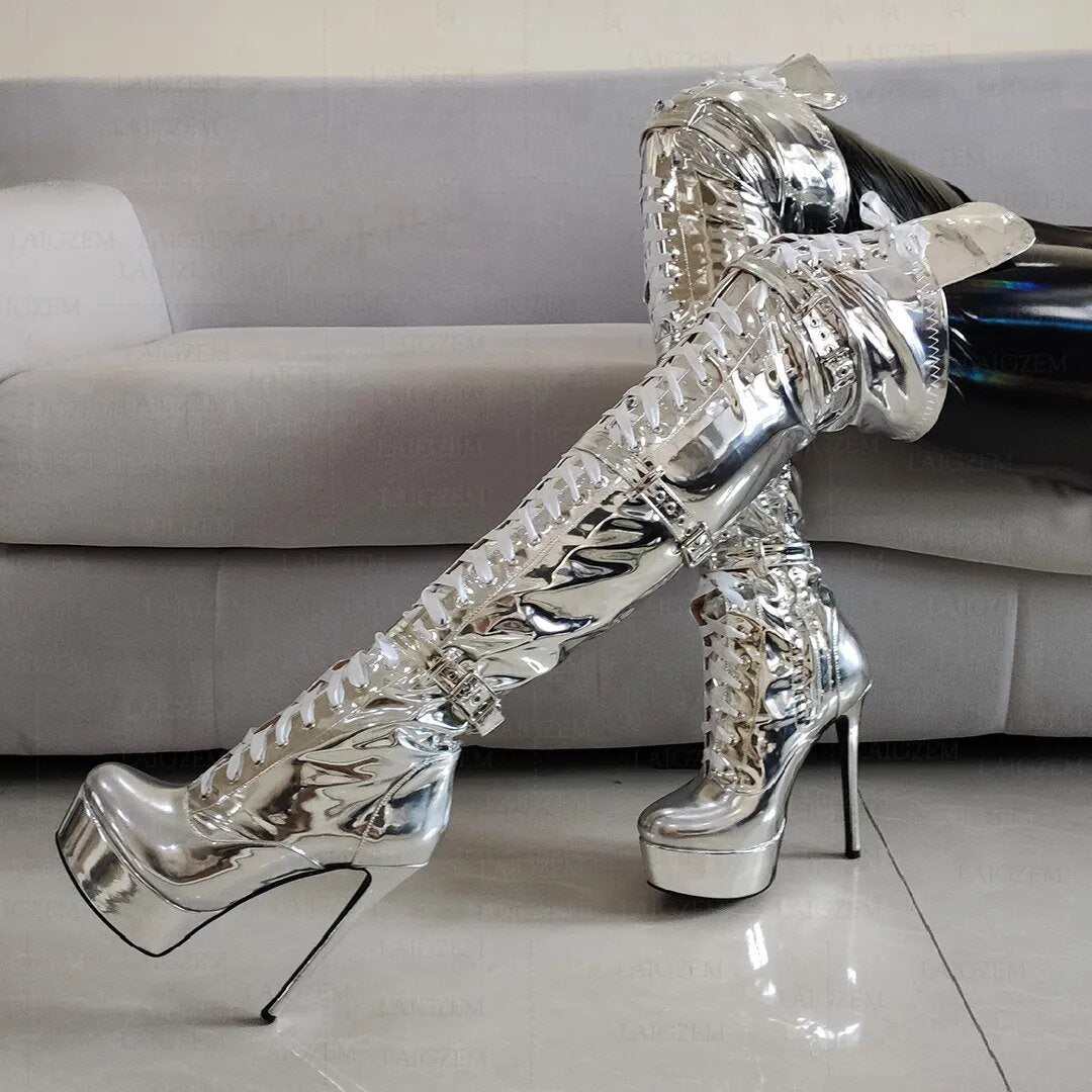 Chasin' Shadows Over The Knee Boots are fashion-forward and stylish. Crafted from high-quality synthetic leather, these boots offer versatile styling. The metallic color variant adds a touch of elegance to any outfit. Make a statement with these beautiful boots.