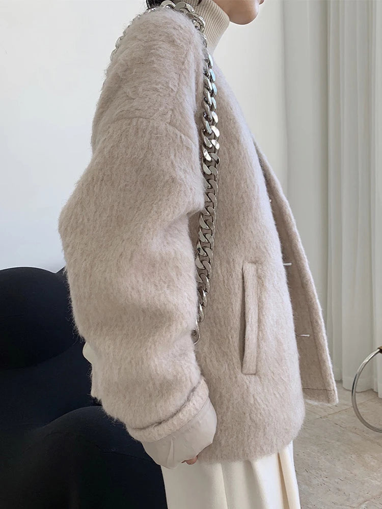 Be bold and stylish with our Ghost of Style Cardigan! Made with a luxurious blend of wool and polyester, this single-breasted cardigan features a classic V-neck and a solid pattern. Keep warm while looking effortlessly chic.