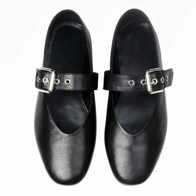Unleash your fearless side with the Glitter In Veins Flats Shoes. These ballet flats feature a bold buckle strap closure that adds edge to classic elegance, making every step shine with confident sparkle. Perfect for those who dare to stand out.