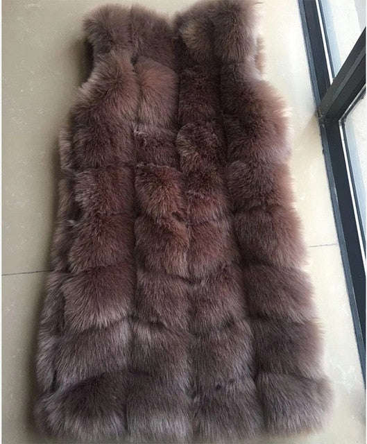 Abrigo de piel sintética con cuello en O sin mangas y cierre de botón