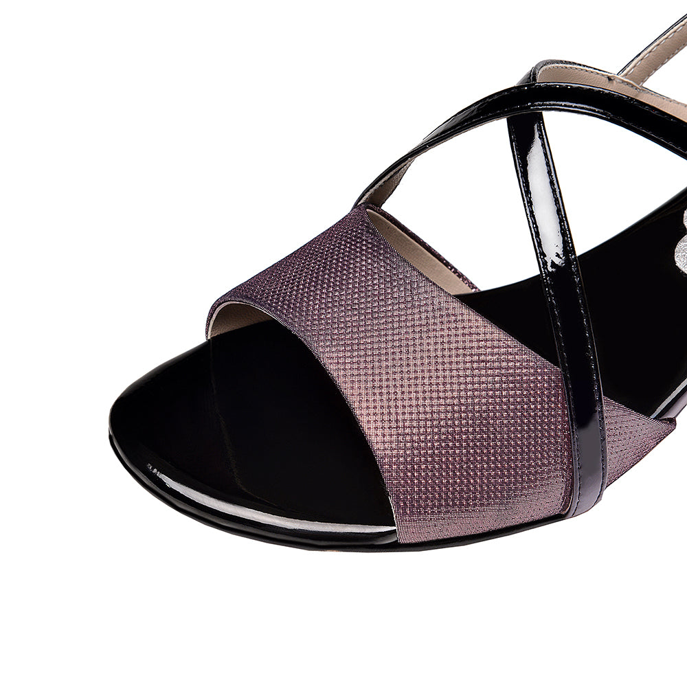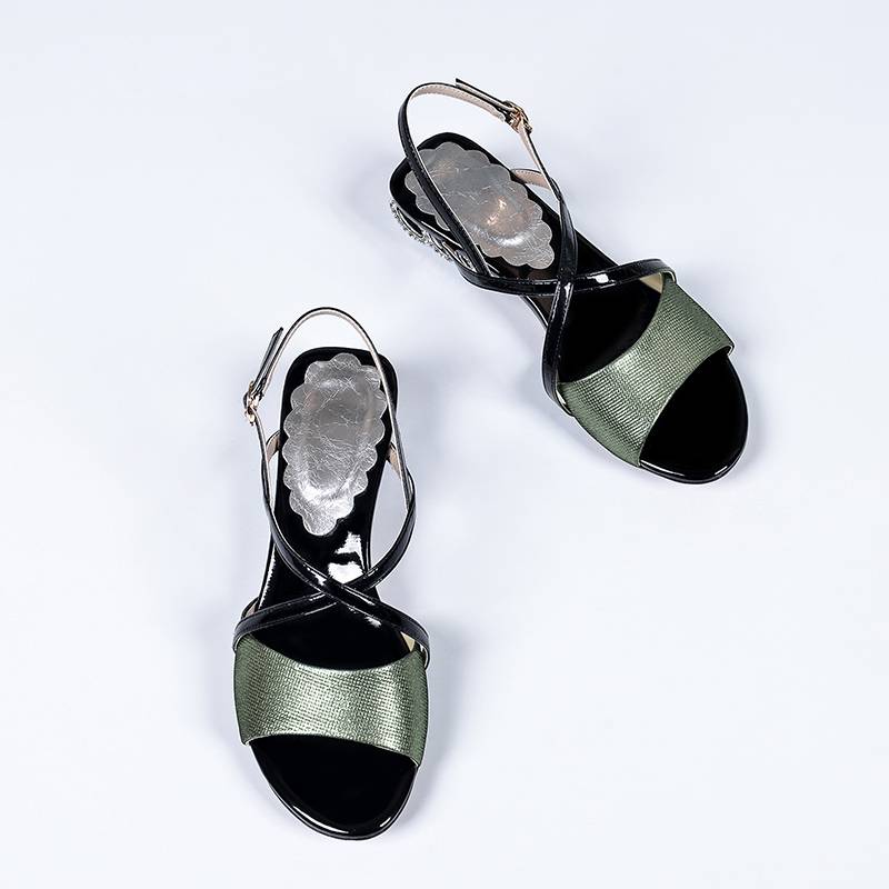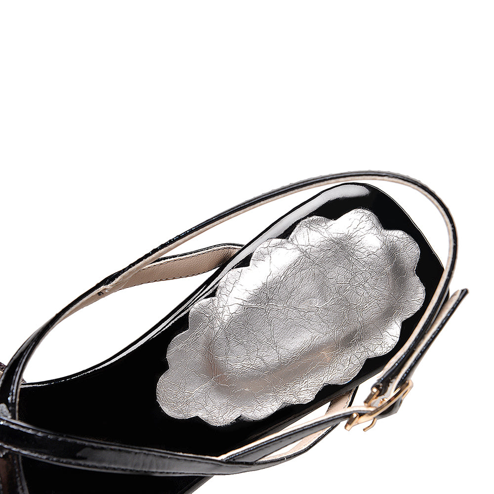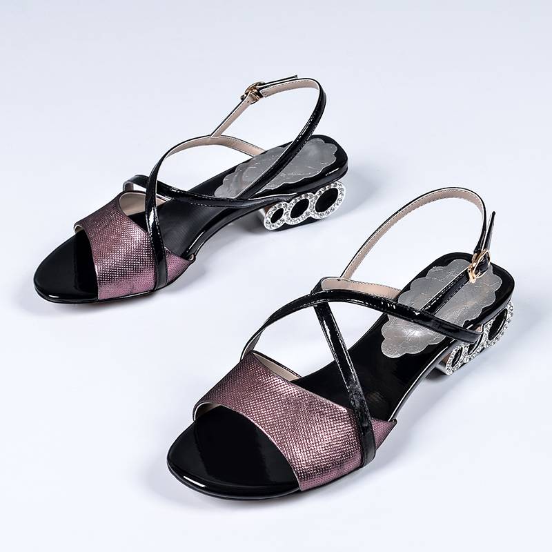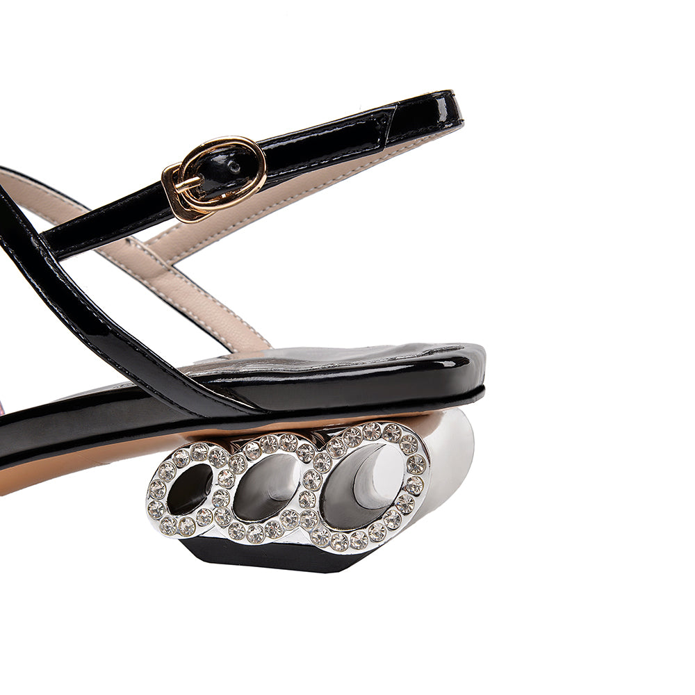 Sandalias de piel de vaca genuina con tacones únicos decorados con diamantes de imitación y cierre de correa en el tobillo