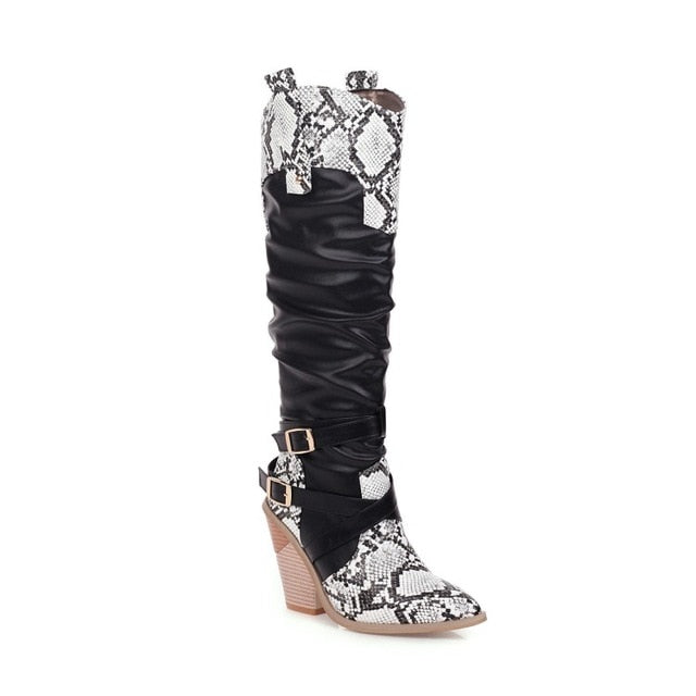 Bota hasta la rodilla con estampado de serpiente de cuero PU