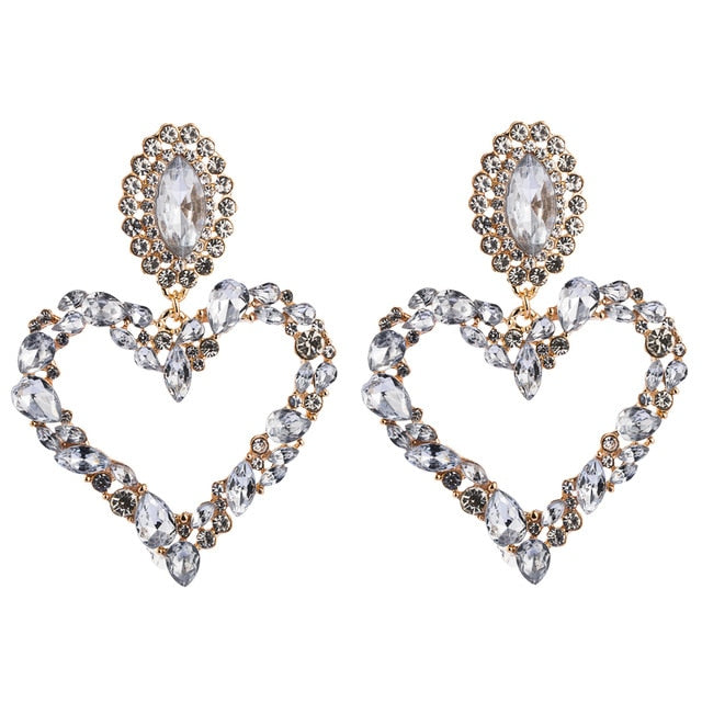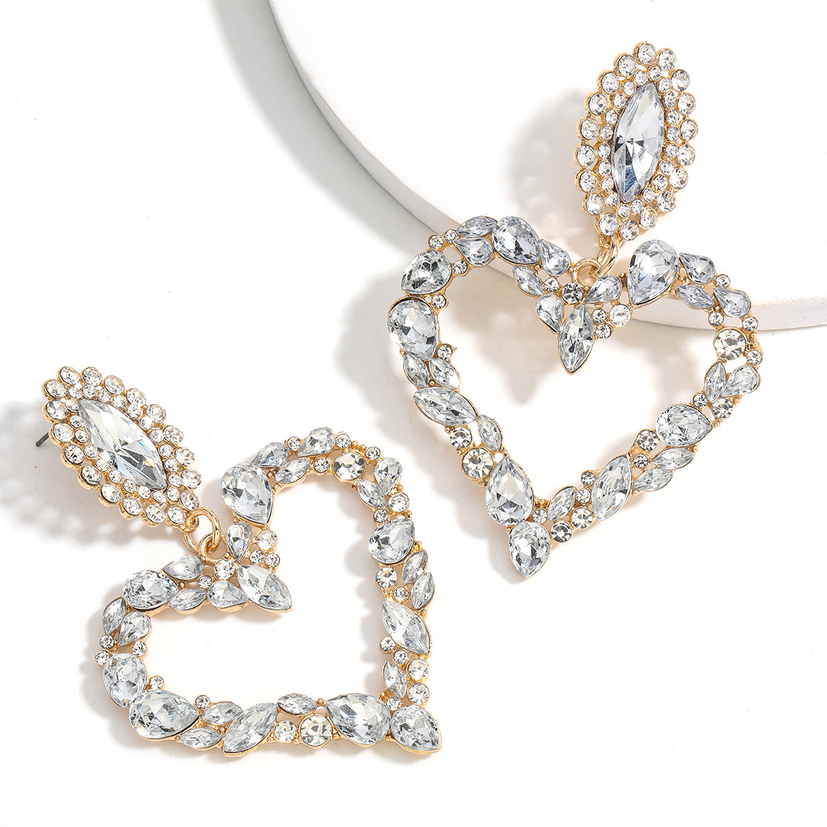 Pendientes colgantes con forma de corazón con material de aleación de zinc y decoración de diamantes de imitación