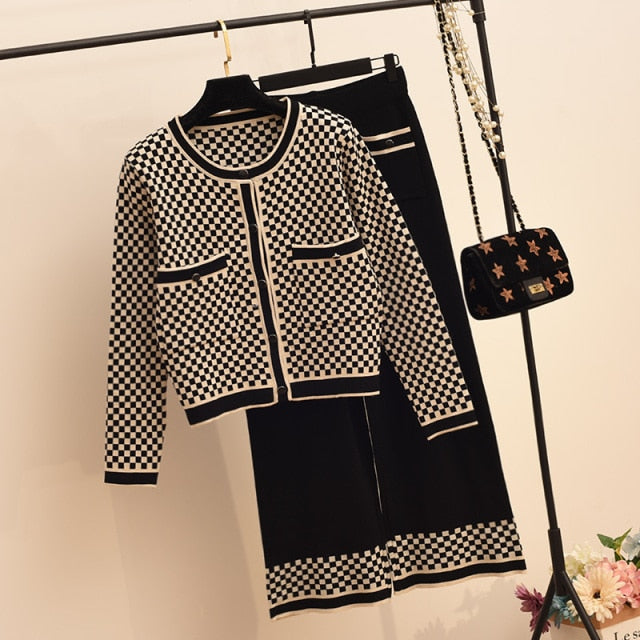 The checkered pattern on this stylish sweater is a fun and casual choice that has a slight O-neck collar and single-breasted closure. Match with the solid maxi skirt that will keep you comfortable all day long.