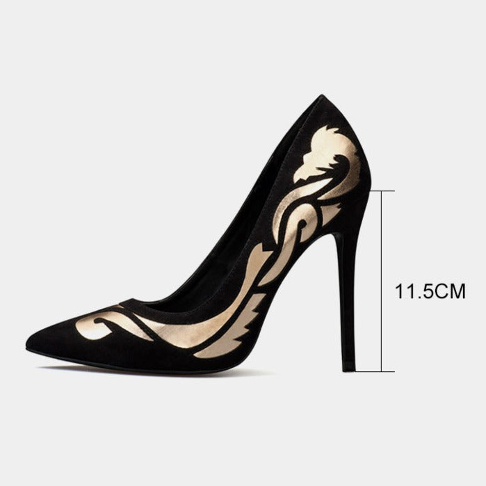 Zapatos de salón de tacones finos con punta puntiaguda de cuero de PU