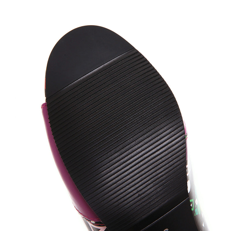 Zapatos de tacón y puntera abiertos de piel sintética con decoración de estampado étnico