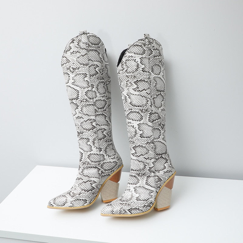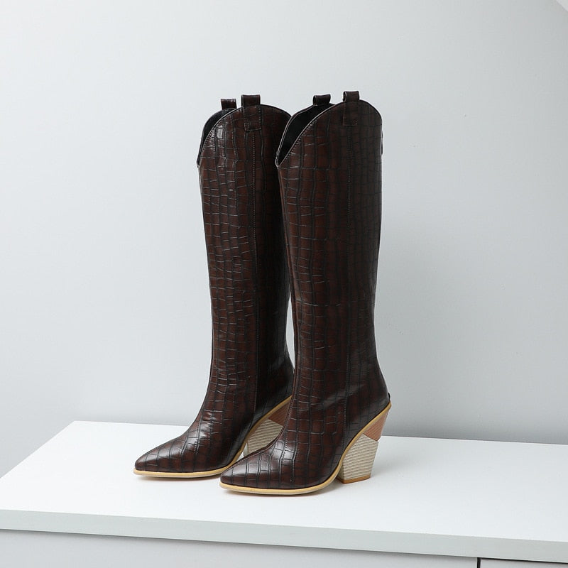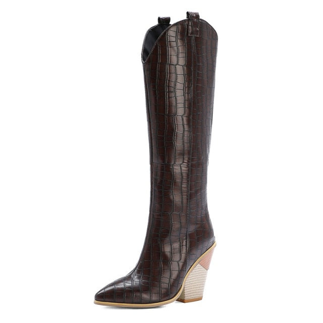 Bota de media pantorrilla con semi cuñas hecha de cuero nobuck y material flocado con cierre de cremallera en la parte posterior