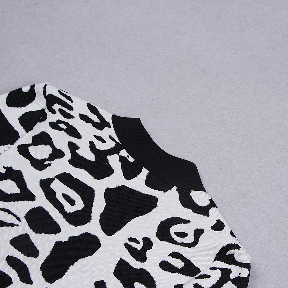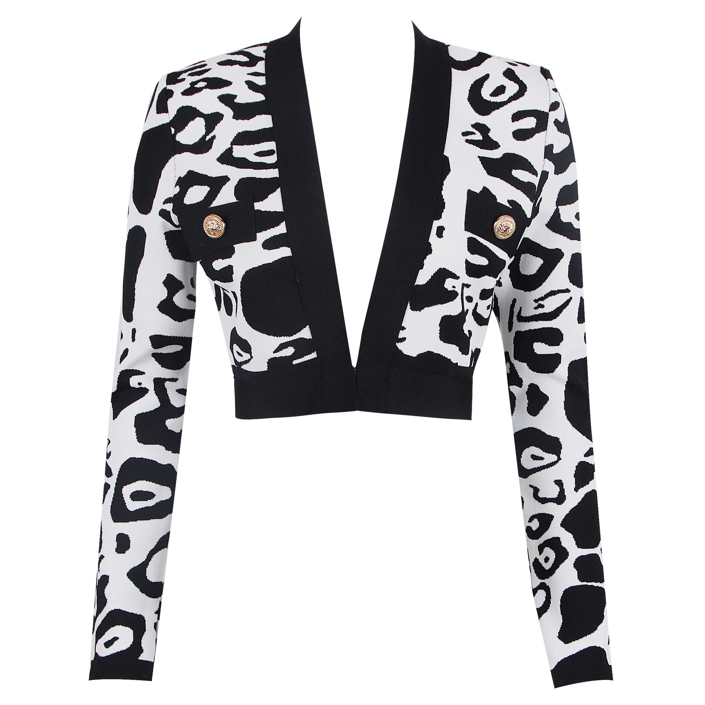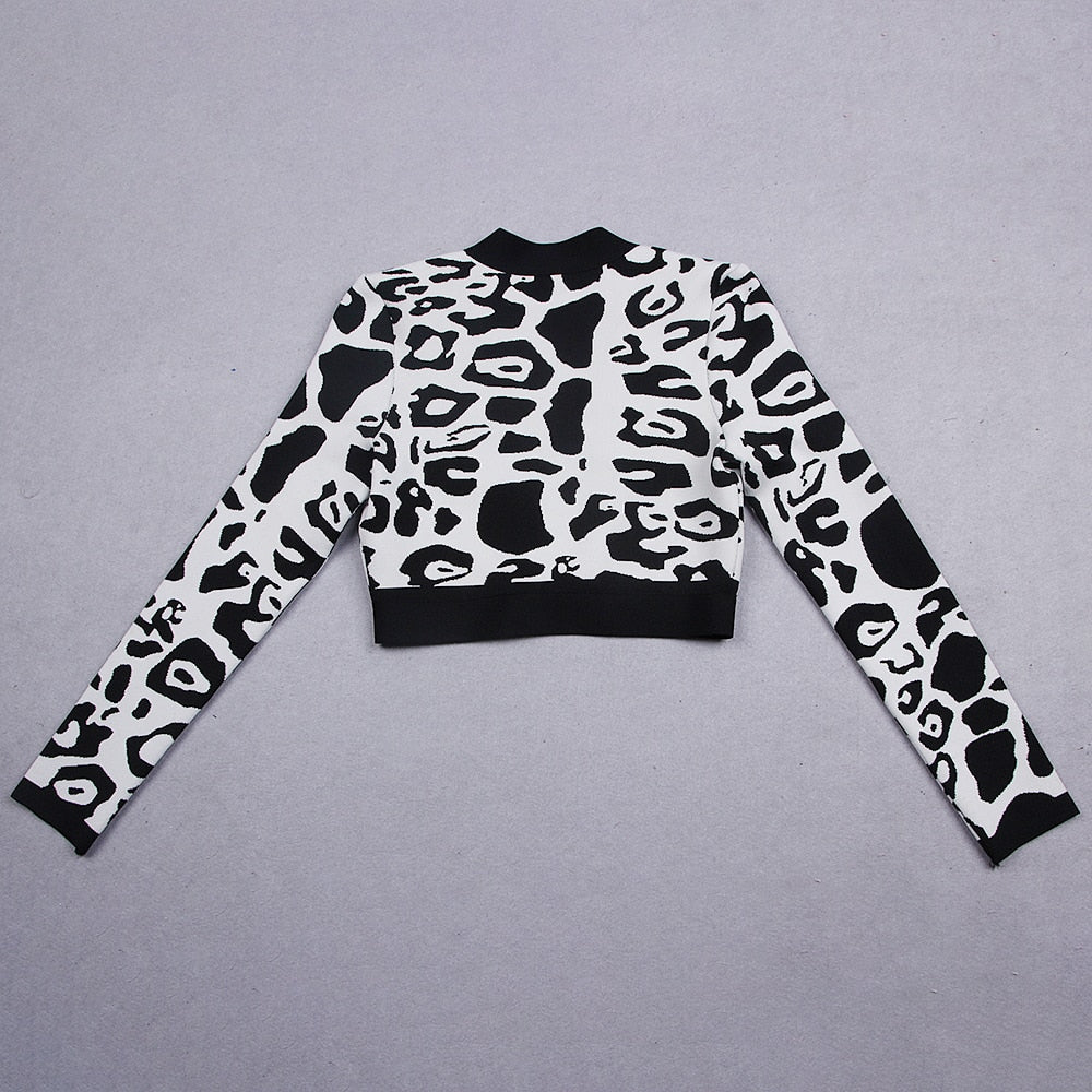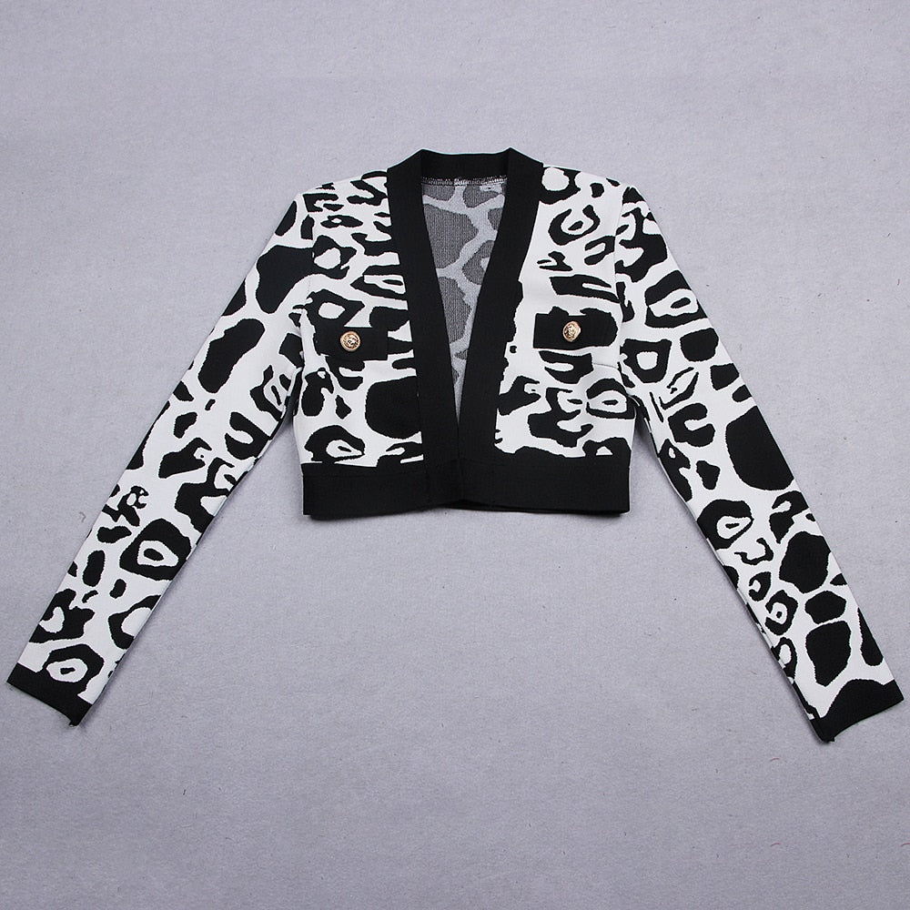 Get ready to be the center of attention with this sweater. The black and white leopard pattern adds a bold style to this outer. The deep v-neckline combined with the crop style creates an effortlessly sexy look. Pair this with your favorite shorts or skirt for a casual day out.