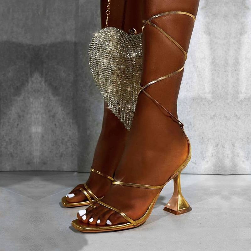Tacones de gladiador con cordones cruzados, estampados sólidos, cuero PU, caucho
