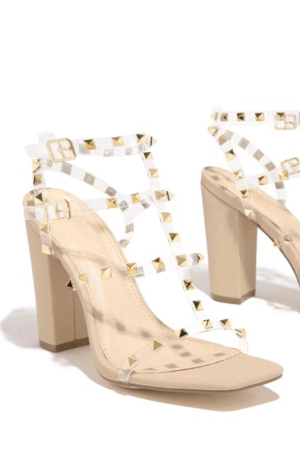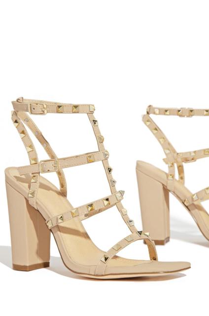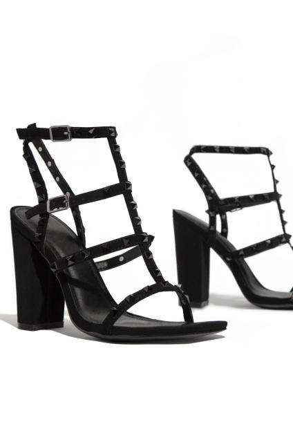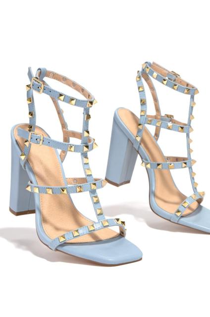 Sandalias de gladiador de punta cuadrada con decoración de remaches y cierre de hebilla