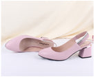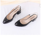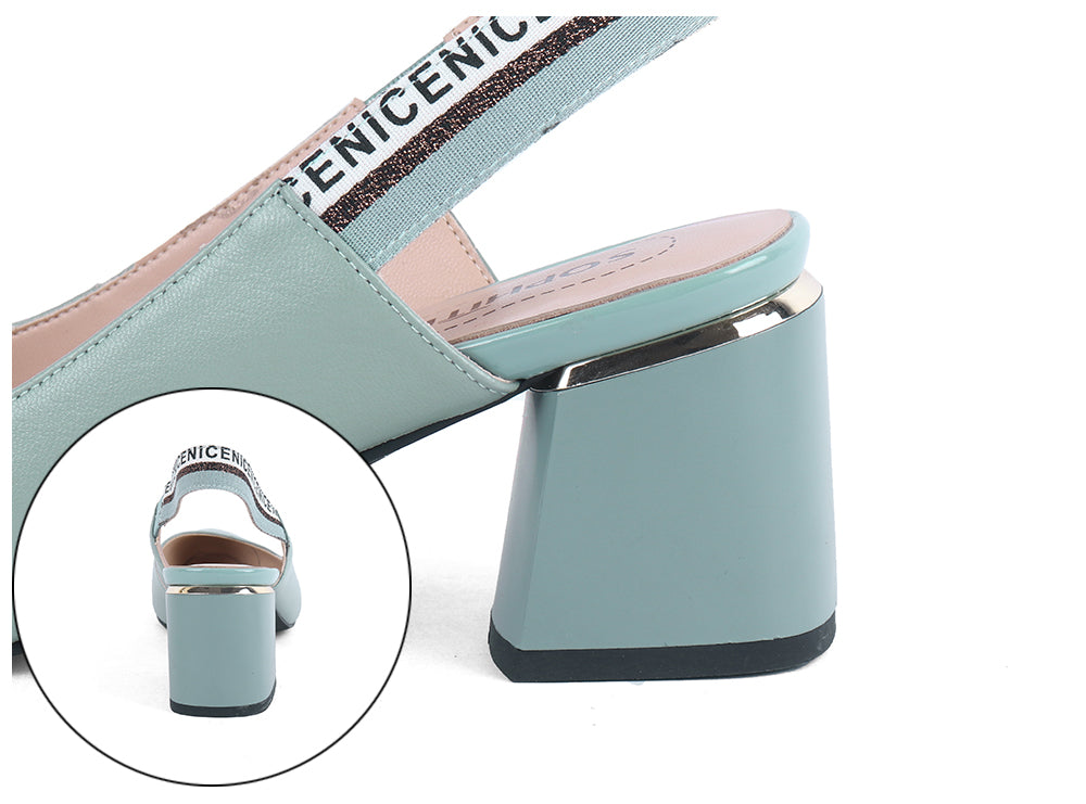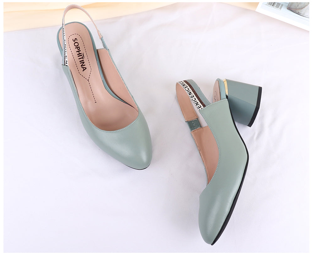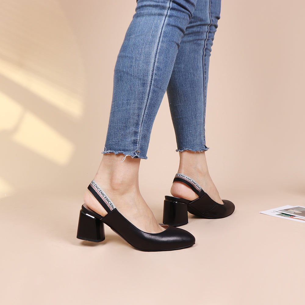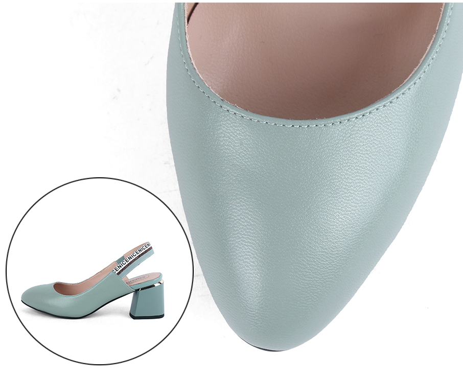 Sandalias destalonadas de tacón grueso hechas de cuero de vaca genuino para el material superior con tacones gruesos, punta redonda y correa elástica