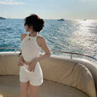 A timeless and chic crop top, this is the perfect wardrobe staple for every woman. Made from high-quality cotton and featuring a hollow-out design, this is the perfect crop top for every woman to have in her closet. With a sleeveless design and halter neckline, this top is both versatile and stylish.