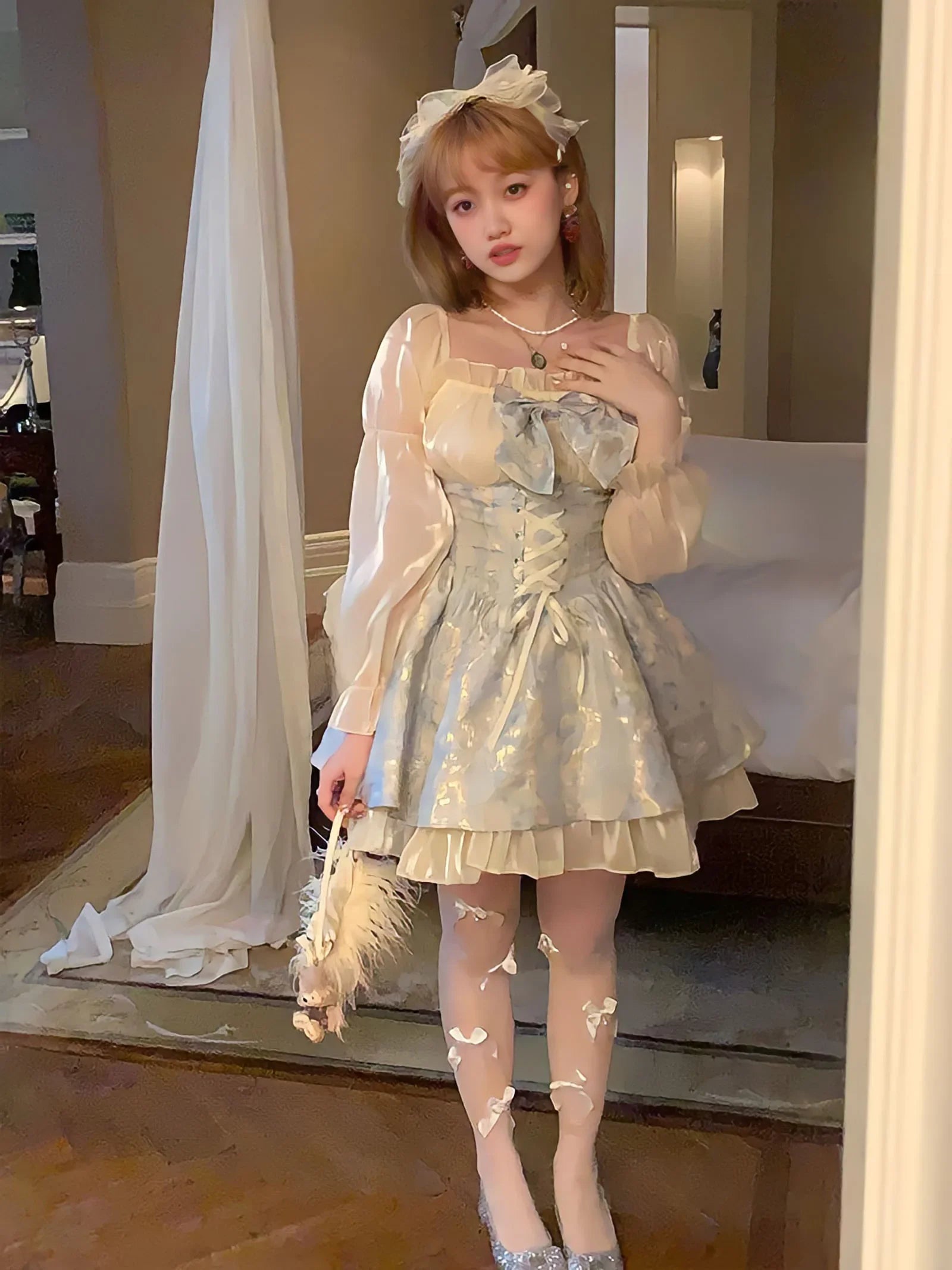 Embrace your inner Lolita with the River For A Soul Mini Dress. Made with soft polyester and organza, this dress features elegant full sleeves and intricate bow and lace detailing. Let this whimsical dress inspire your soul and make you feel like a true doll!