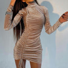 This gorgeous sequined dress is sophisticated, which will look great with a pair of heels and some jewelry for a night out on the town. The turtleneck collar will keep you looking stylish and classy. The drawstring detail adds a fun and stylish touch. This dress will give you the confidence you need to look your best.
