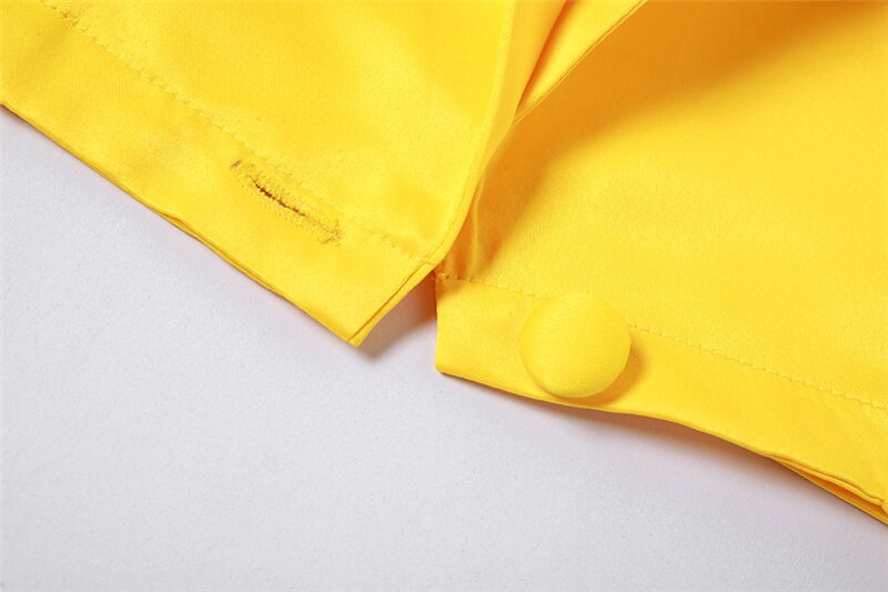 This set is great for any occasion and any season. The crop top features a classic v-neckline. These short sets are super cute and come in red or yellow colors.