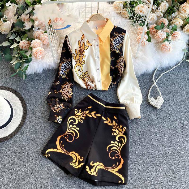 Conjuntos cortos de algodón de seda con estampado floral clásico