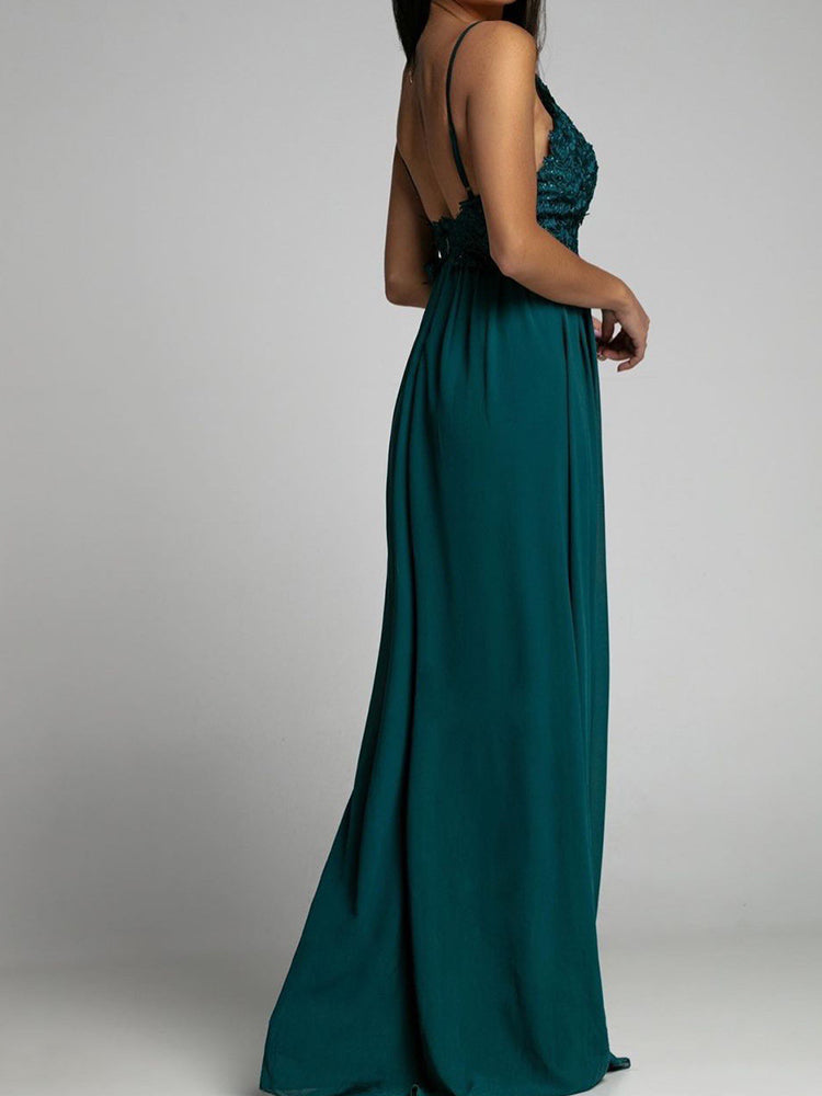 This "Lace-Bodice Dress" is perfect for a variety of occasions, and is a timeless staple in any woman's wardrobe. The dress features a sleeveless with a backless design, lace decoration, and a fitted waist. This dress can be worn as a party dress. It is also available in a variety of colors and sizes to suit your needs.