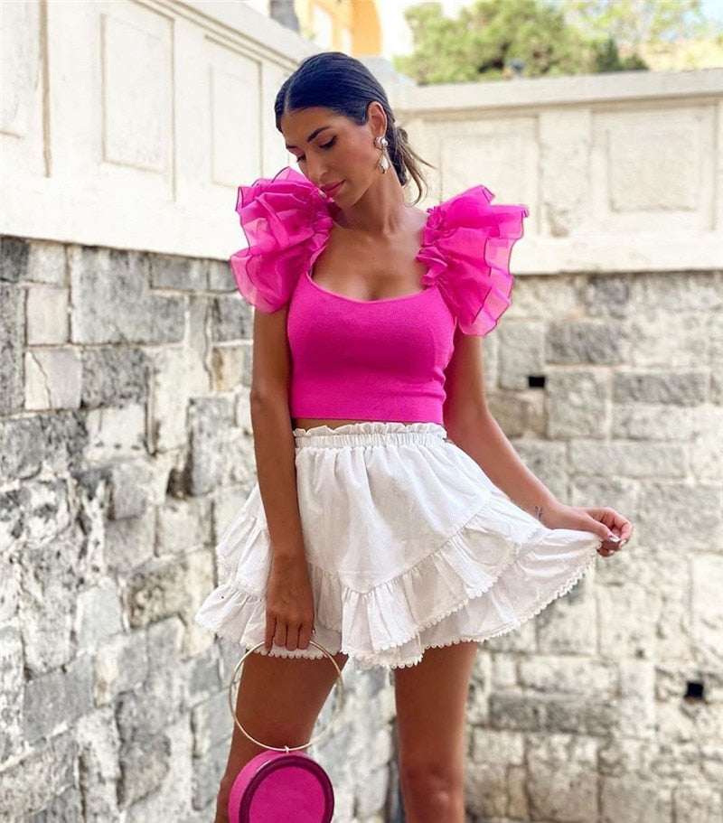 The Worth The Hype Crop Top offers a stylish but practical look for any occasion. It features a sleeveless, ruffles sleeve design crafted from polyester, and is fitted with lace and ruffle decoration details and a V-neck collar. Expertly tailored for an ideal fit.