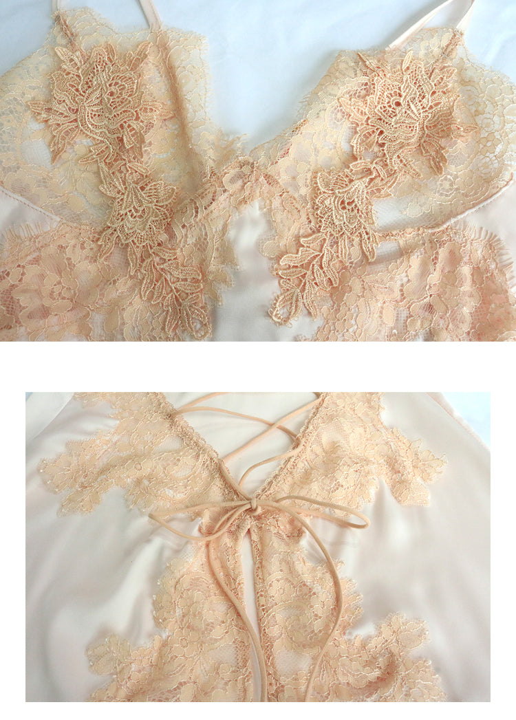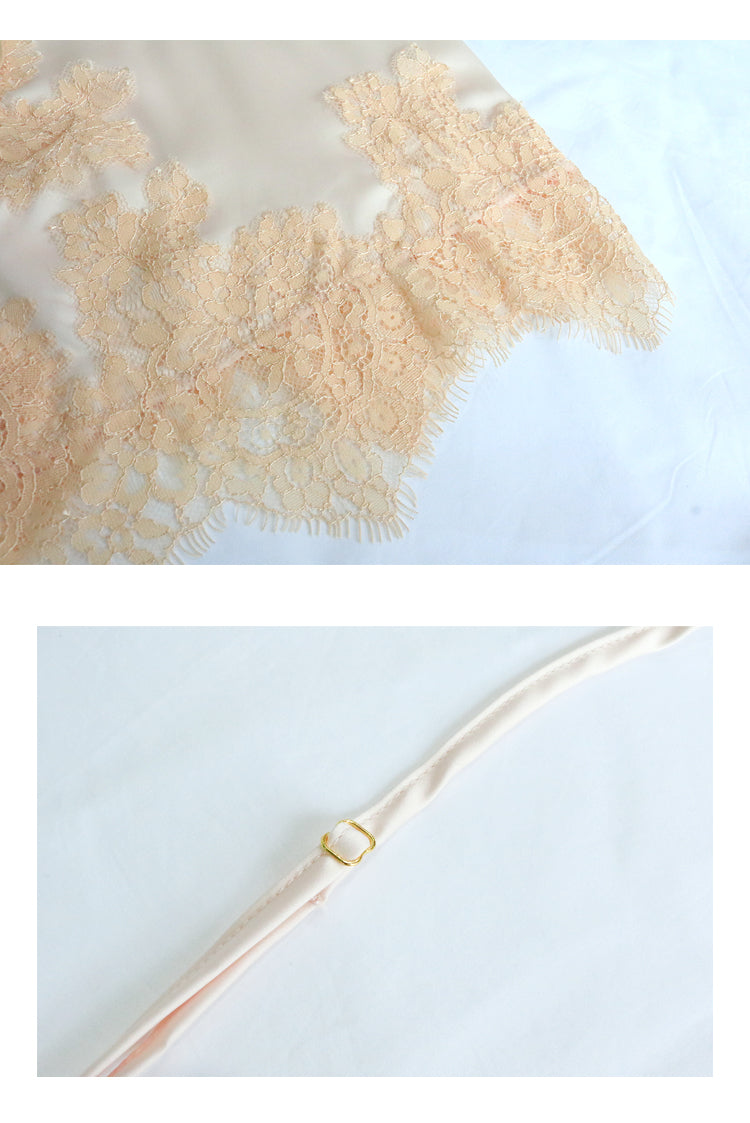 Camisón de encaje de spandex con tirantes finos y bordes florales