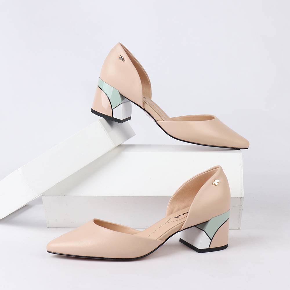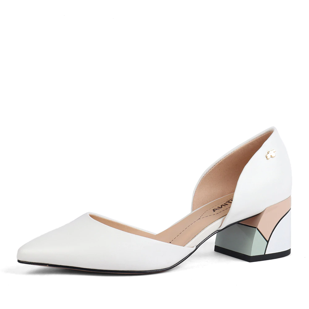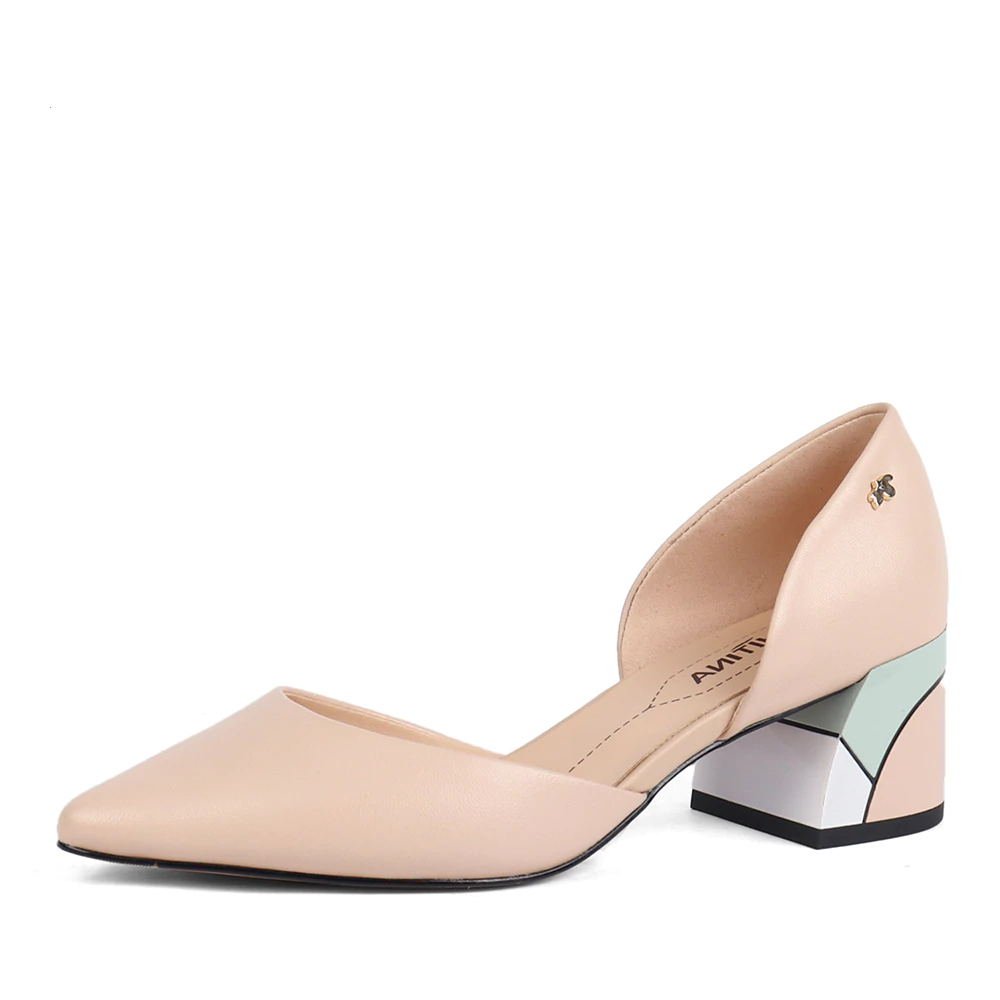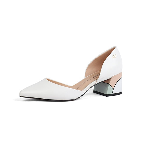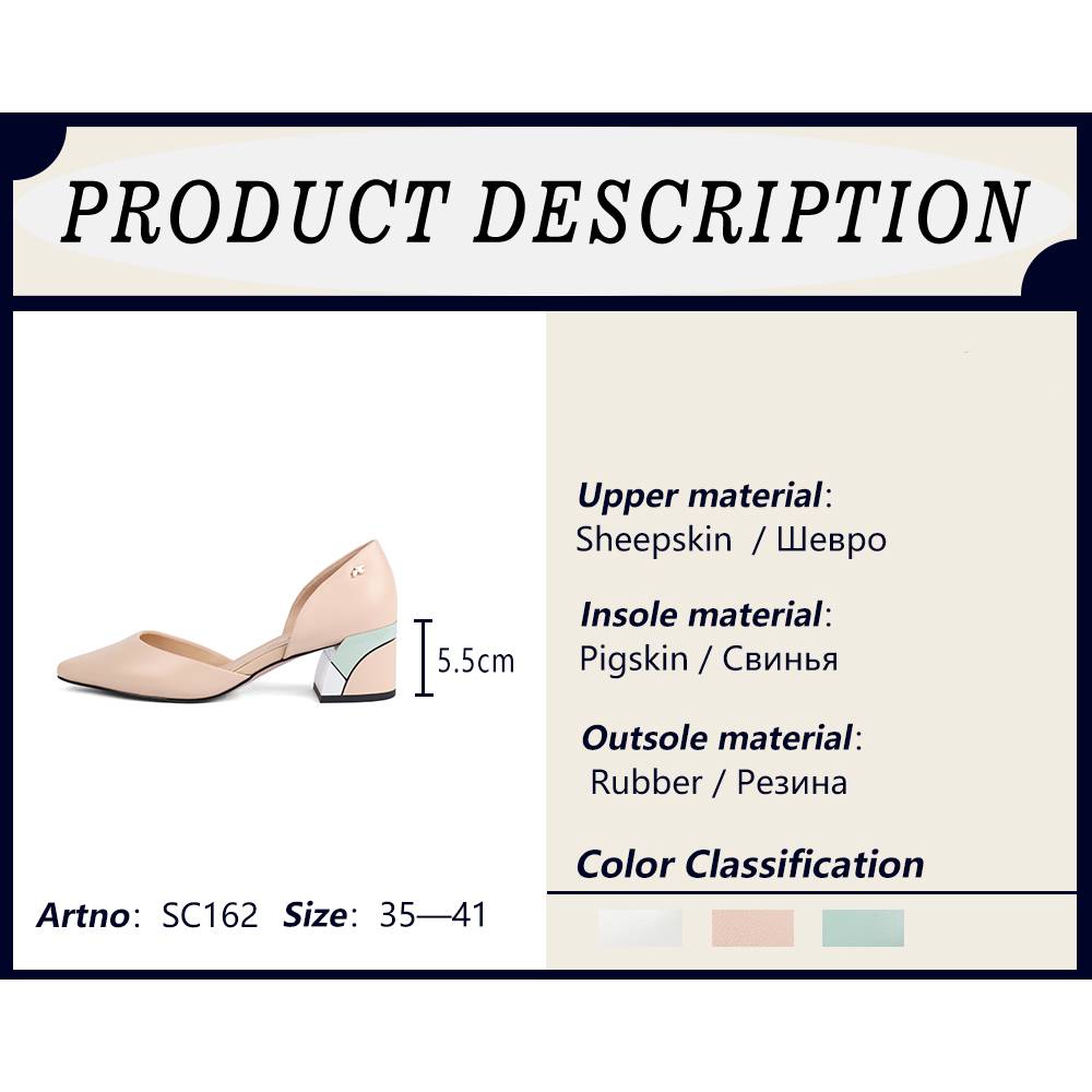 Zapatos de salón de tacón cuadrado cómodos de piel de oveja en piel auténtica