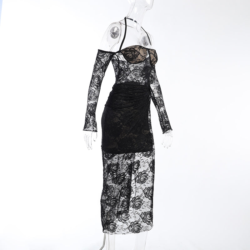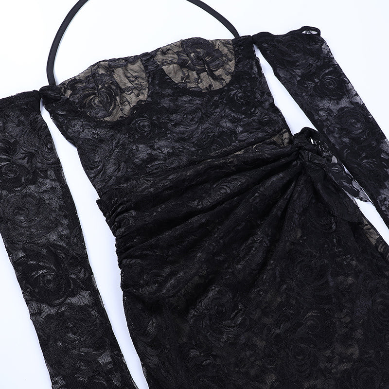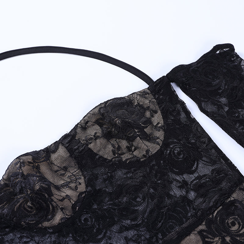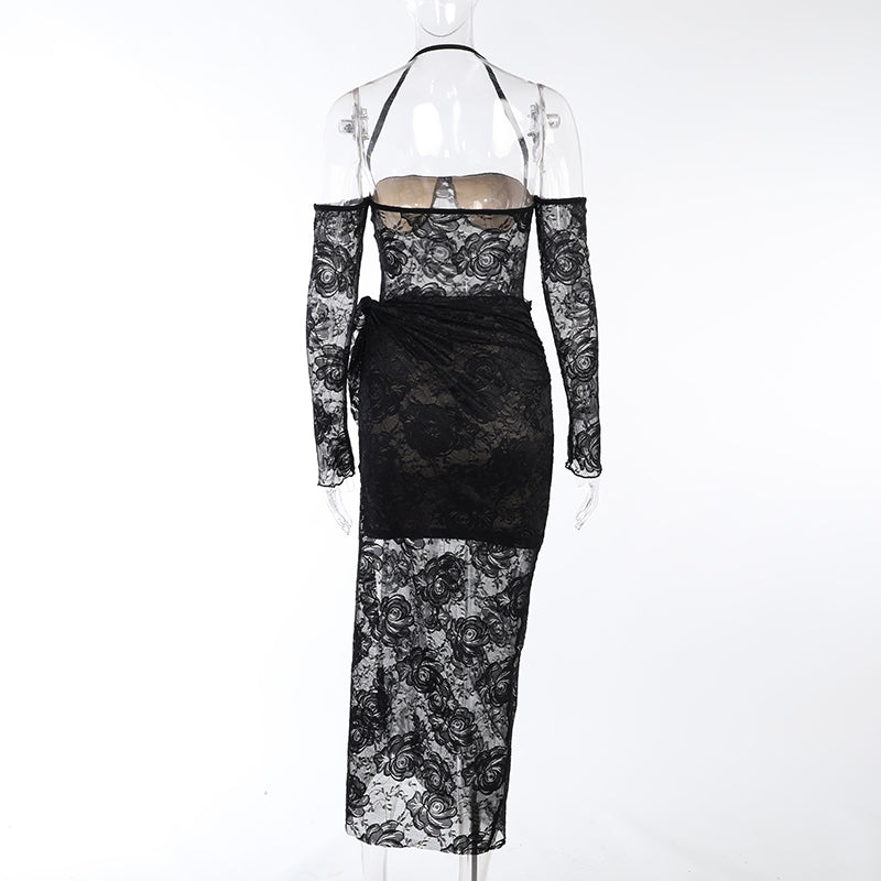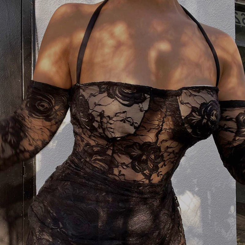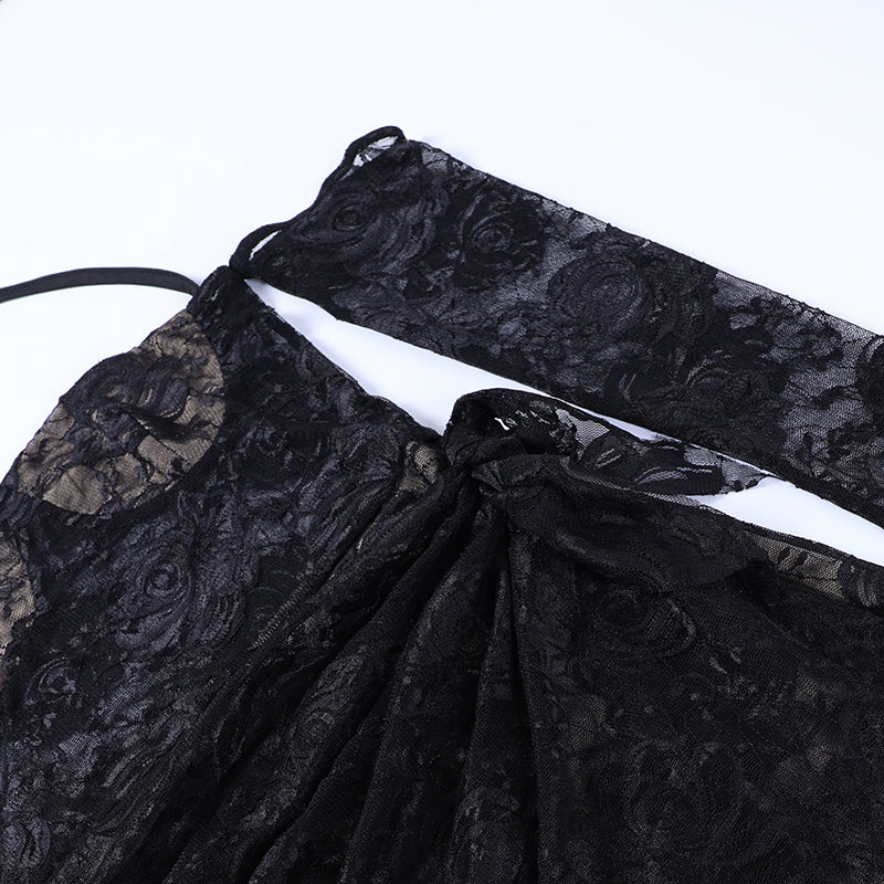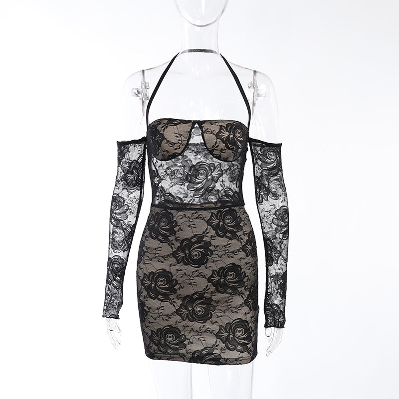 This mini dress is a playful and beautiful choice for summer evenings. The charming rose pattern is flattering and a great way to add style to your summer outfit. Dress up for a night out or down for a day at the beach, the elegant off-shoulder design and halter straps help to flatter your figure. The lace sarong is also a perfect addition to keeping the summer breeze at bay. This dress is sure to become a favorite for years to come.