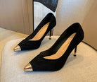 Look great and feel great in these simple and comfortable slip-on shoes. The simple and versatile look of a pump shoe is a wardrobe staple that you can rely on for years. This women's shoe features a pointed toe and thin heel that is sure to become a favorite for any wardrobe.