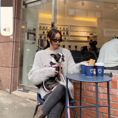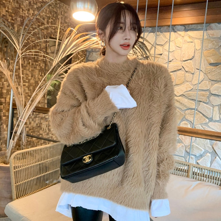 Suéter de estampado sólido con cuello en O, manga larga y material acrílico