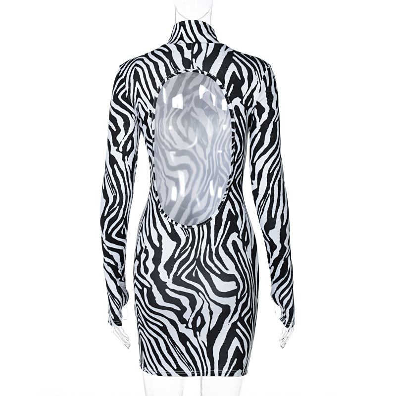 This attractive women's dress is perfect for spring and summer. It's a playful style with a zebra print design. The hollow-out style at the back is ideal for adding a little something extra to your already cute outfit.