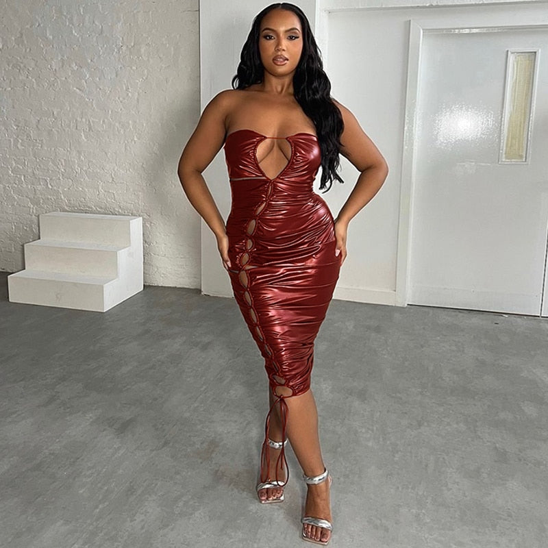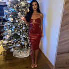Look sophisticated and chic in this Just Missing You Mid-Calf Dress. This midi dress is crafted from a blend of spandex and polyester and features a beautiful solid red-brown color. The dress is further enhanced with a delicate hollow out pattern that adds a touch of modernity to its traditional silhouette.