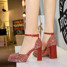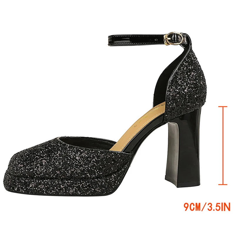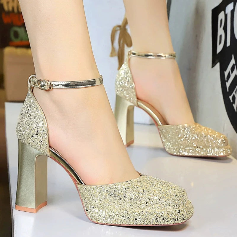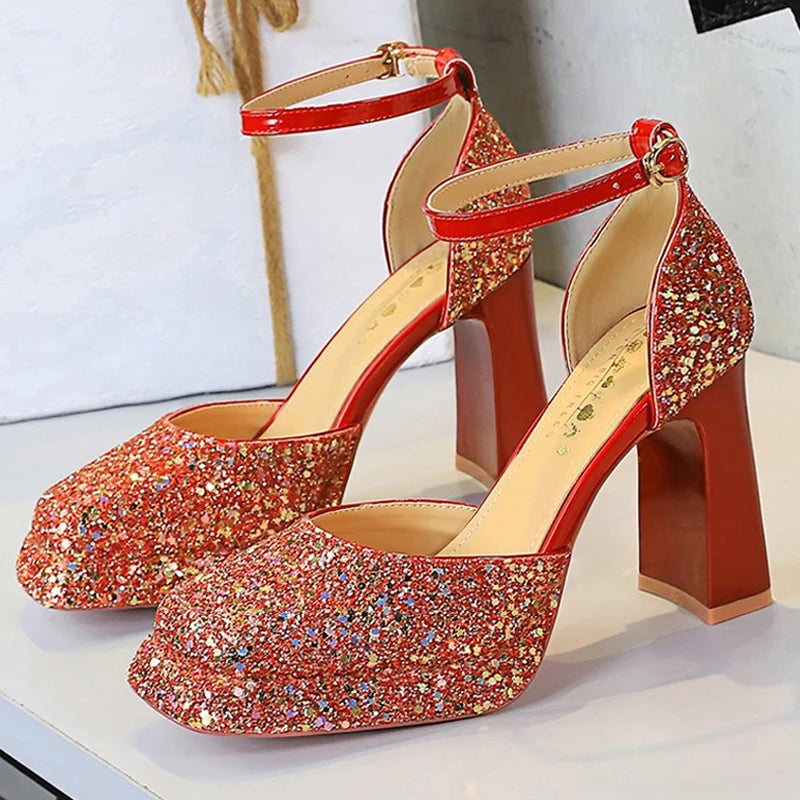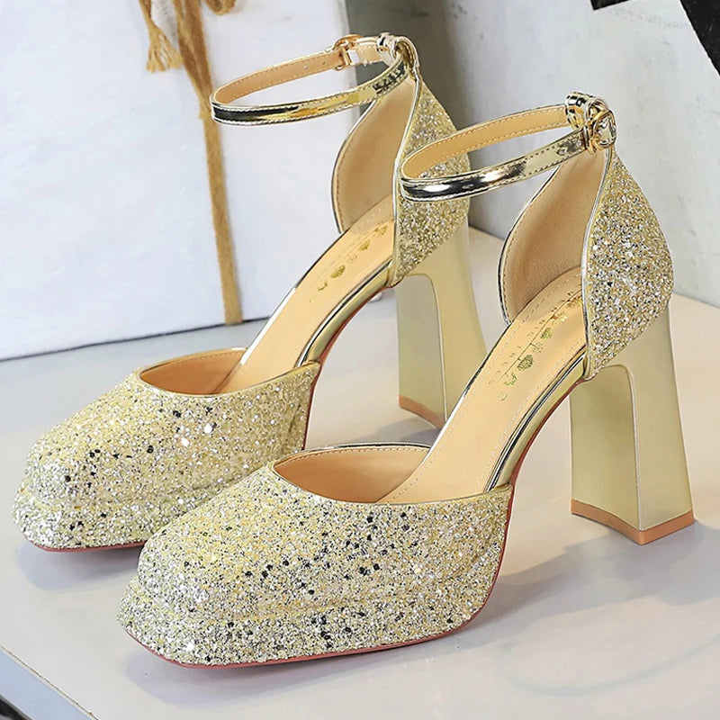 Indulge in a moonlit makeover with our stunning pump shoes! Made with sequinned cloth and a comfortable PU insole, these sandals will elevate any outfit. Perfect for a night out or special occasion, bring glamor and comfort to your wardrobe.