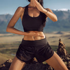 Pantalones cortos a capas con cintura imperio hechos de material de poliéster