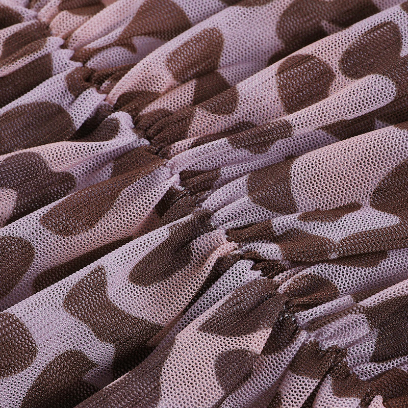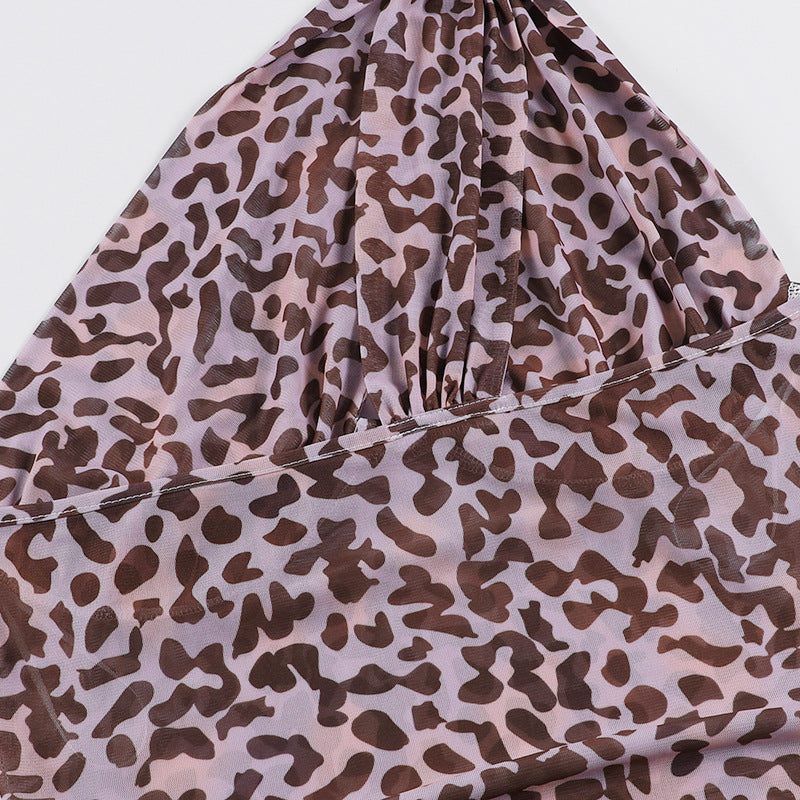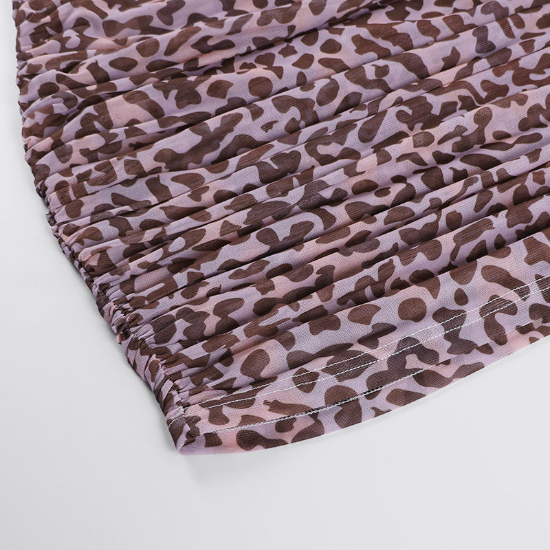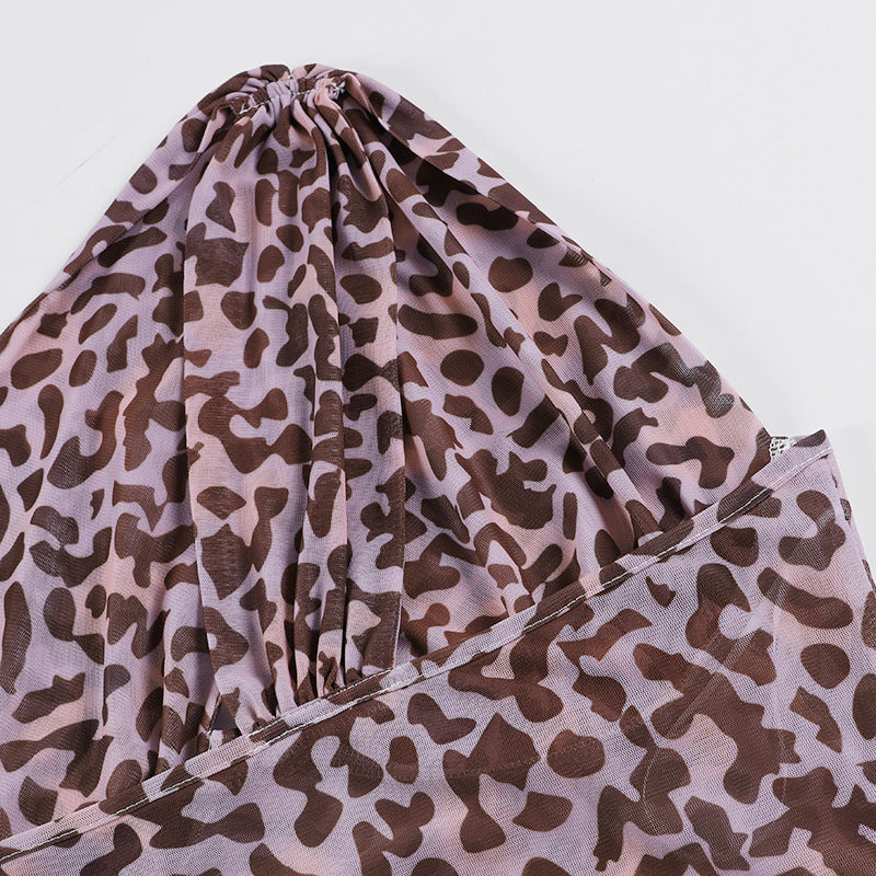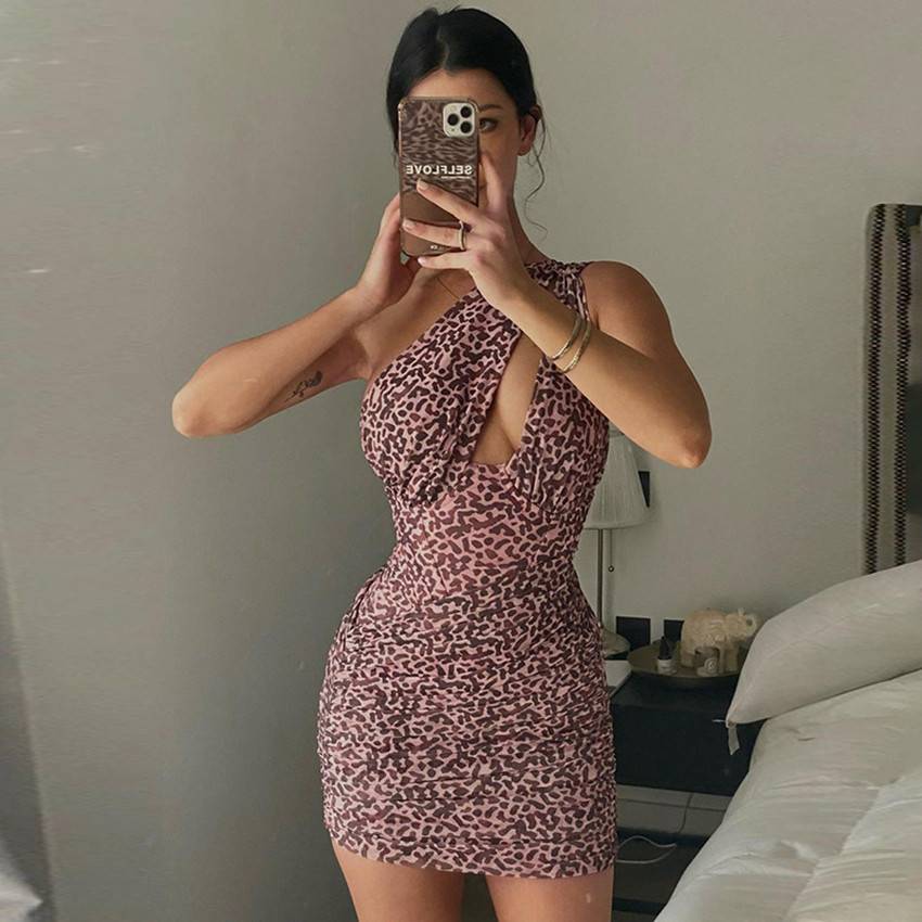 Minivestido sin mangas con doble tirante y un hombro hecho de material de poliéster spandex con estampado de leopardo completo