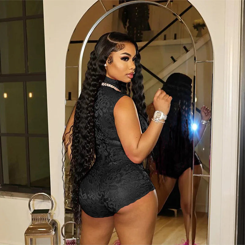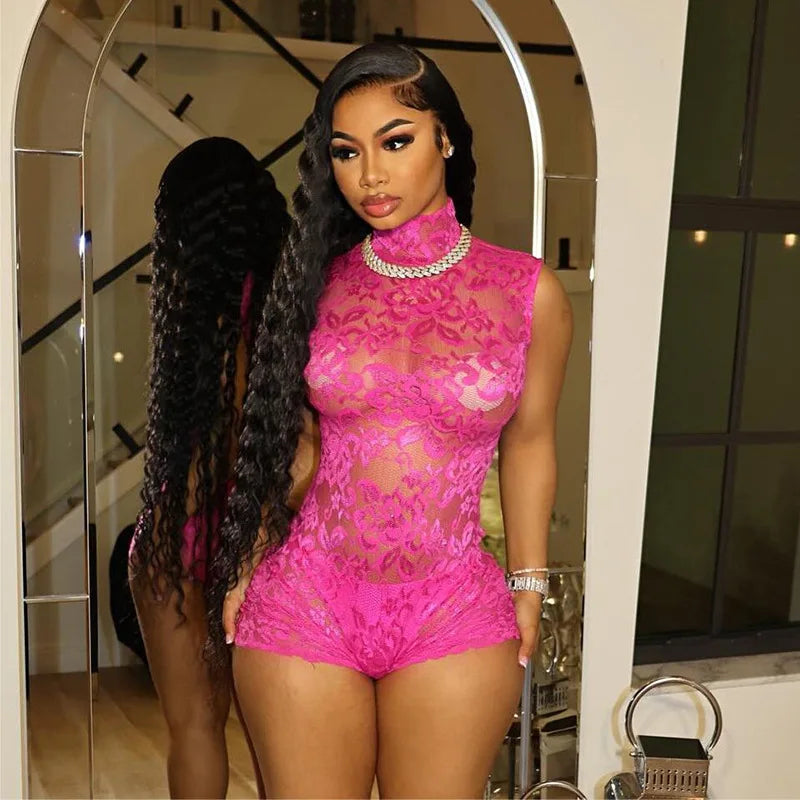 Get ready to turn heads with our Track We Made Romper! The sexy and club-worthy lace fabric will have you feeling confident and alluring. Made with high-quality polyester, this sleeveless romper is perfect for a night out or a special occasion. Make a statement and stand out in style!