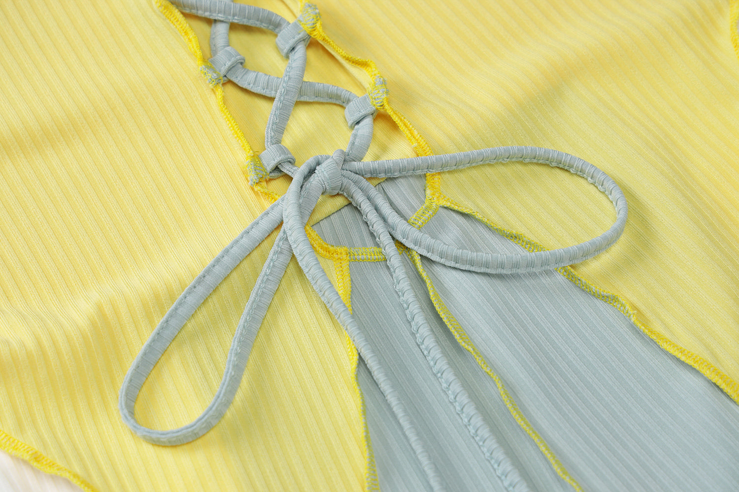 Mono liso de spandex de poliéster sin mangas con encaje frontal y estilo patchwork de tres colores