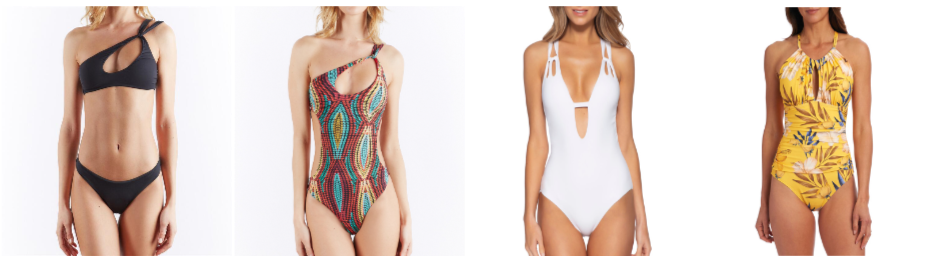 Show off your summer tan in this beautiful bikini. This two-piece bikini is full of colorful patterns with a cut-out design on the top and bottom. A fun bikini that is perfect for any summer vacation.