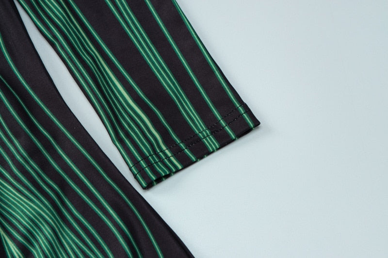 This long-sleeved maxi dress is a statement piece that is perfect for any occasion. The attractive green pattern is paired with a sexy neckline that features a flattering spandex material. Pair with a wide range of accessories to complete this flattering look.