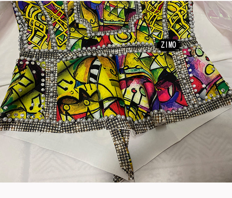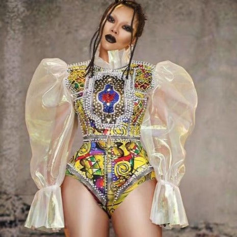 Conjuntos de blusa de manga abullonada con cuello alto y pantalones cortos
