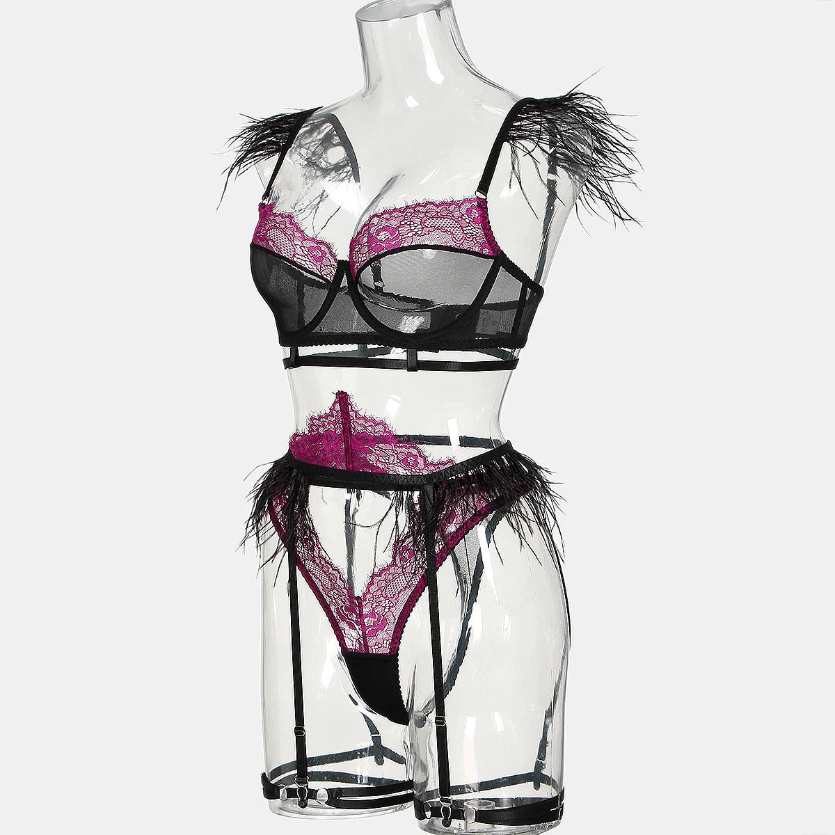 Introducing our stunning lingerie set! Made with polyester, this solid lingerie set will help you feel confident and comfortable all day long. The adjustable straps provide a perfect fit for any body type. Experience the ultimate style and comfort with our lingerie set!