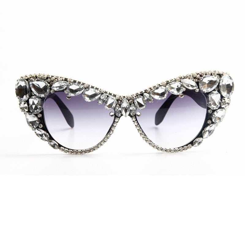 Gafas de sol ojo de gato decoradas con diamantes de imitación con montura de acetato y lente acrílica UV400