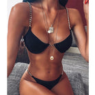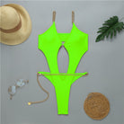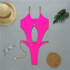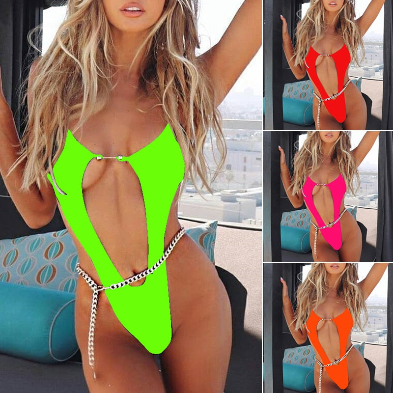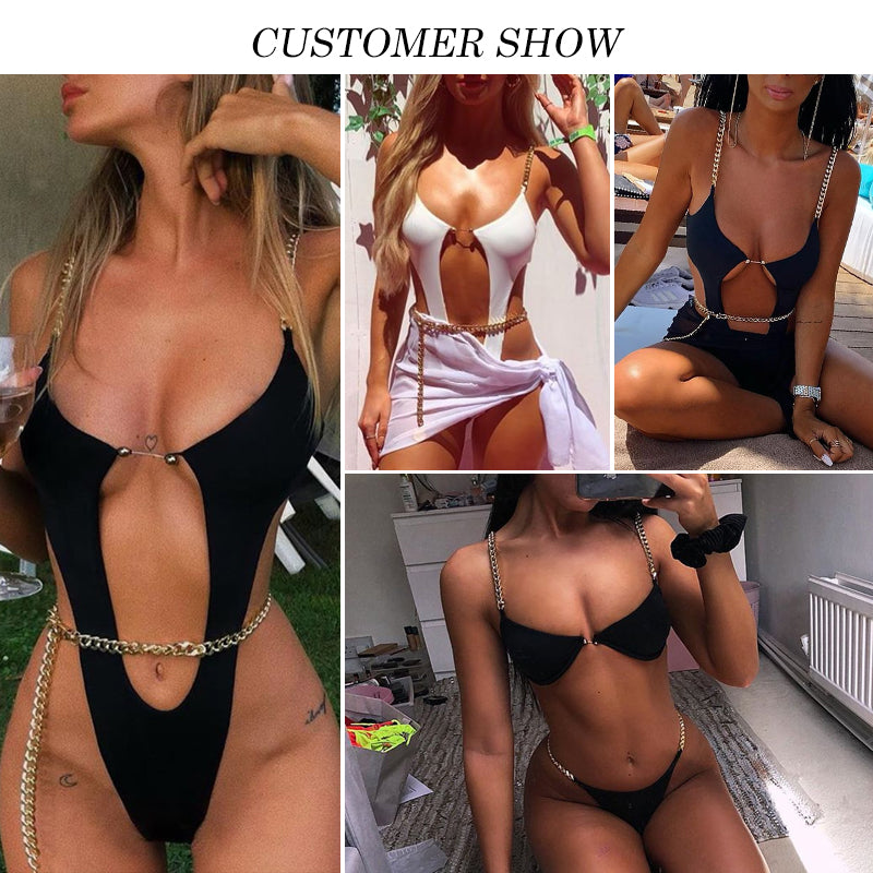 Bikini de spandex de poliéster estilo correa de cadena sólida con Monokini y variante de dos piezas
