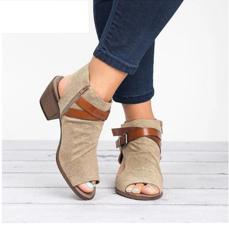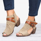 Caucho de PU en el talón de punta abierta con correa de hebilla
