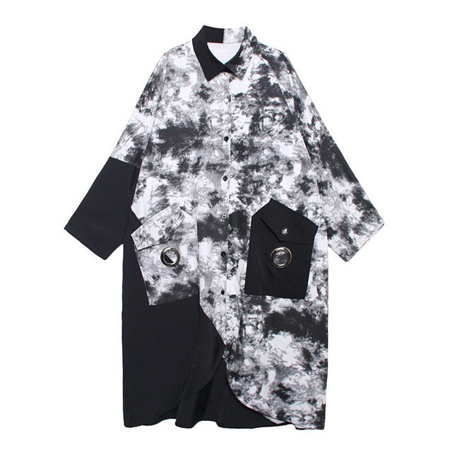 Gabardina de patrón abstracto con decoración de bolsillo, cierre de botonadura simple, cuello vuelto y material de algodón y poliéster