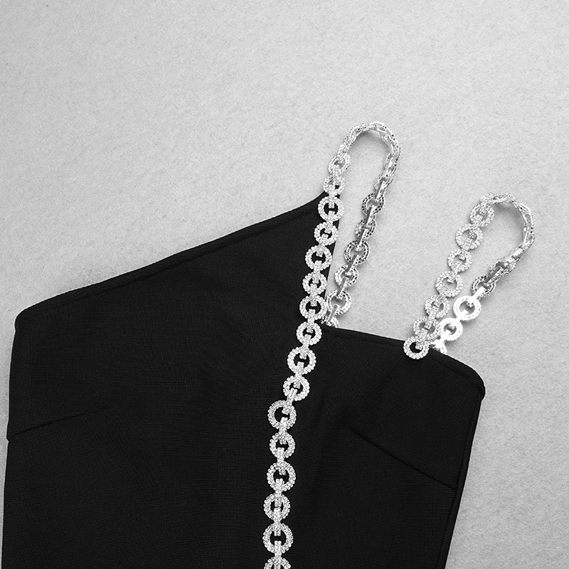 Minivestido de un hombro con correa de cadena y cierre de cremallera