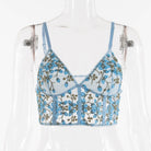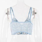 Top corto con decoración floral de encaje ahuecado de poliéster