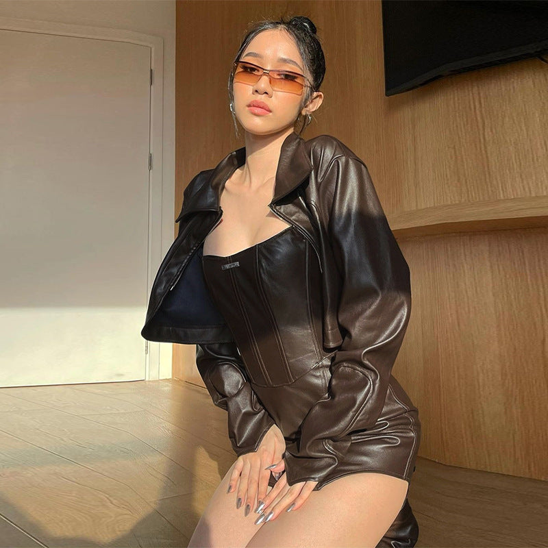 Casual but dressy, this midi dress is made from high-quality faux leather. Wear the dress on its own or pair it with the cropped jacket, it will be a favorite outfit in your wardrobe.