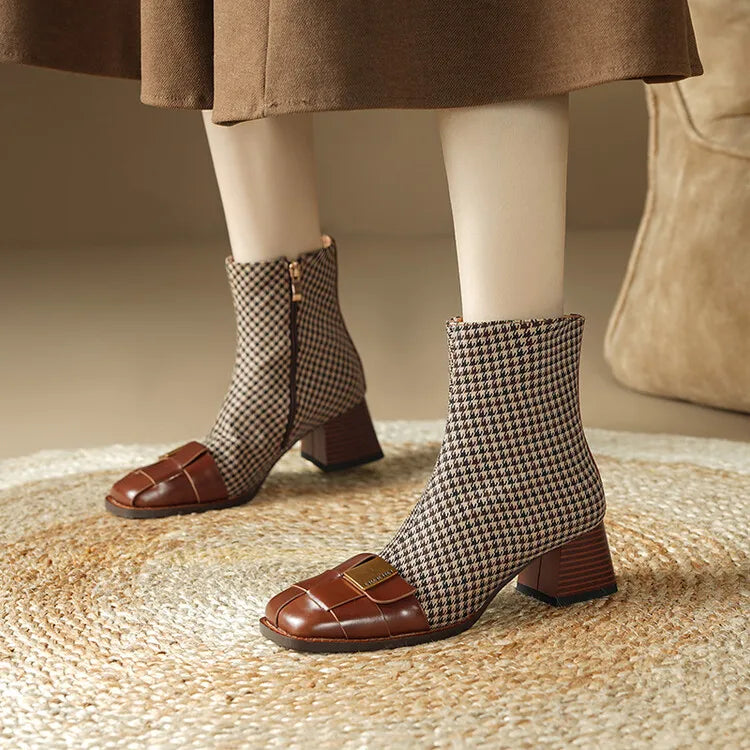 Step out in style with Pop It All Night Ankle Boots. Made with genuine cow leather and lined with soft pigskin, these boots are not only fashion-forward but comfortable. The square heel provides a stable and trendy look, while the ankle height and square toe make for a versatile piece that can be dressed up or down. Perfect for all-day wear, these boots are a must-have for any wardrobe.