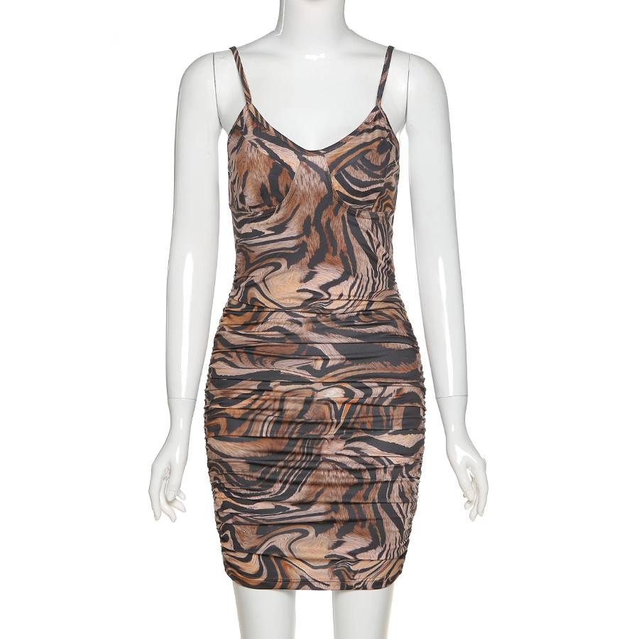 Show off your curves in this sexy and stylish animal pattern mini dress. This stylish dress features a sharp, v neckline that also creates a sexy décolleté. The spaghetti straps make this a great choice for any summer outfit. Pair this with sandals or flip-flops for a sporty look. This versatile outfit can be worn to a party or night out.