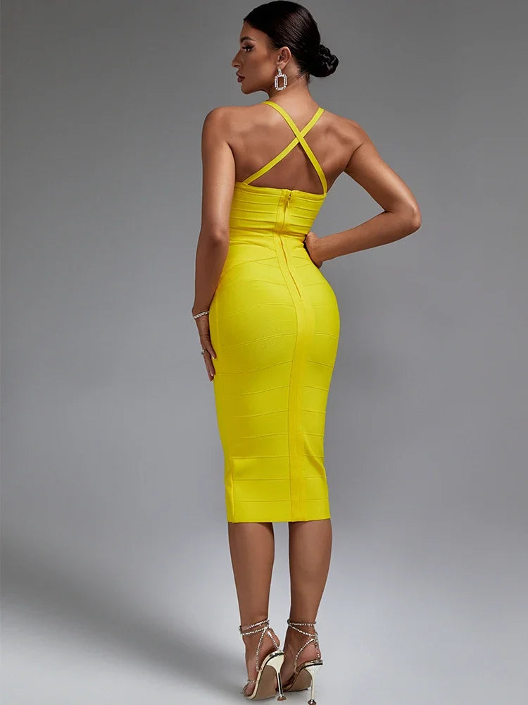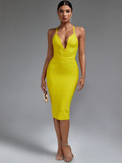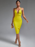 Step up your style game with our Standing On This Midi Dress. Featuring a flattering V-neckline and a slim fit, this dress is perfect for any occasion. Made of high-quality polyester, it offers both comfort and style. With a chic solid pattern and a midi length, you'll stand out in all the right ways. Dress to impress in this must-have piece!